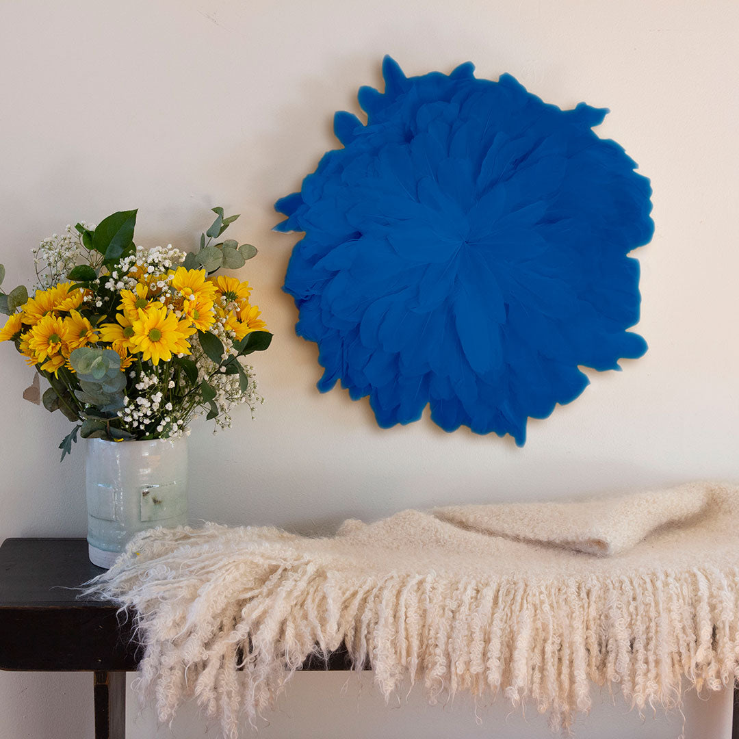 African JuJu Hats Feather Wall Art - Small - Blue Topaz