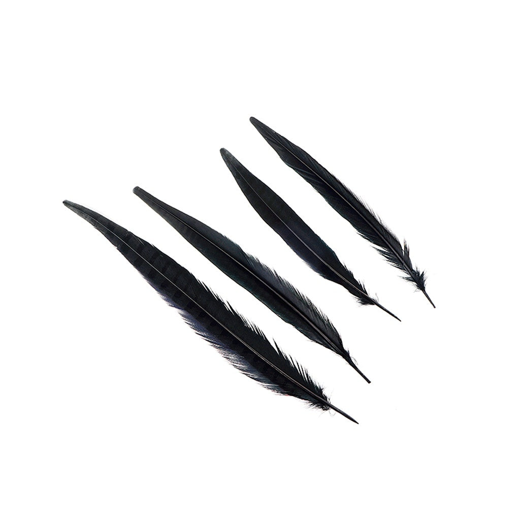 Assorted-Bleached and Dyed Ringneck and Golden Pheasant Tail Feathers will range approximately 8-14 inches long and will come packaged with an assortment of both bleached-dyed Ringneck and Golden Pheasant Tails (you will get a variety of both styles and sizes in this bundle). Both Ringneck and Golden Pheasant tails have a sturdy, somewhat stiff quill, and are approximately 0.75-1" inch wide through the body of the feather, but becomes more narrow and pointed at the top. The process of bleached-dyed pheasant results in bright solid colors with the natural markings barely visible. These feathers come packaged per color but can also be purchased in assorted color mixes. Also available in smaller qunatites (10 piece packages) in our Packaged Feathers category. This is a great item if you want a variety of sizes and feathers for your project at an economical price.