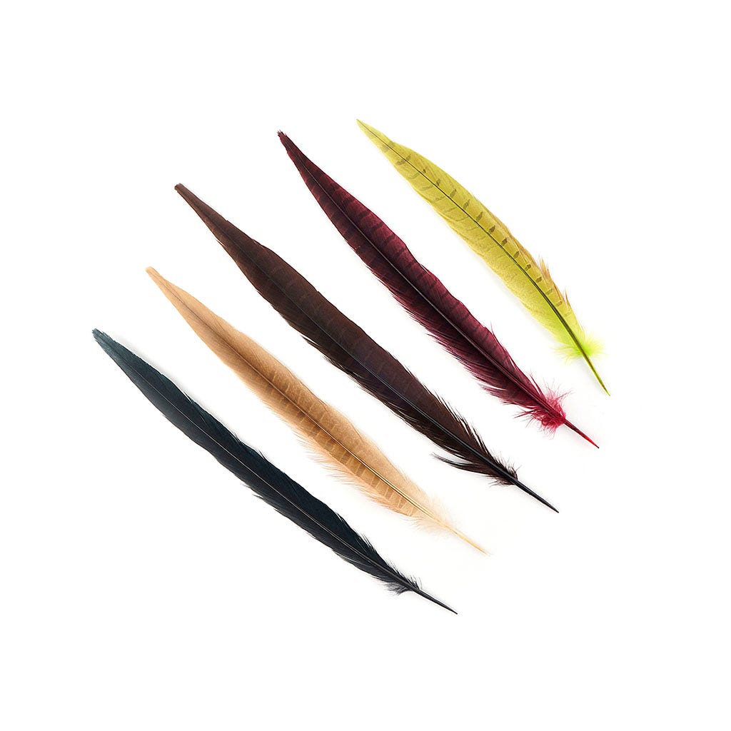 This product is part of our Pheasant Feathers - Assorted Bleached- Dyed Ringneck and Golden Pheasant Tail Feathers category.