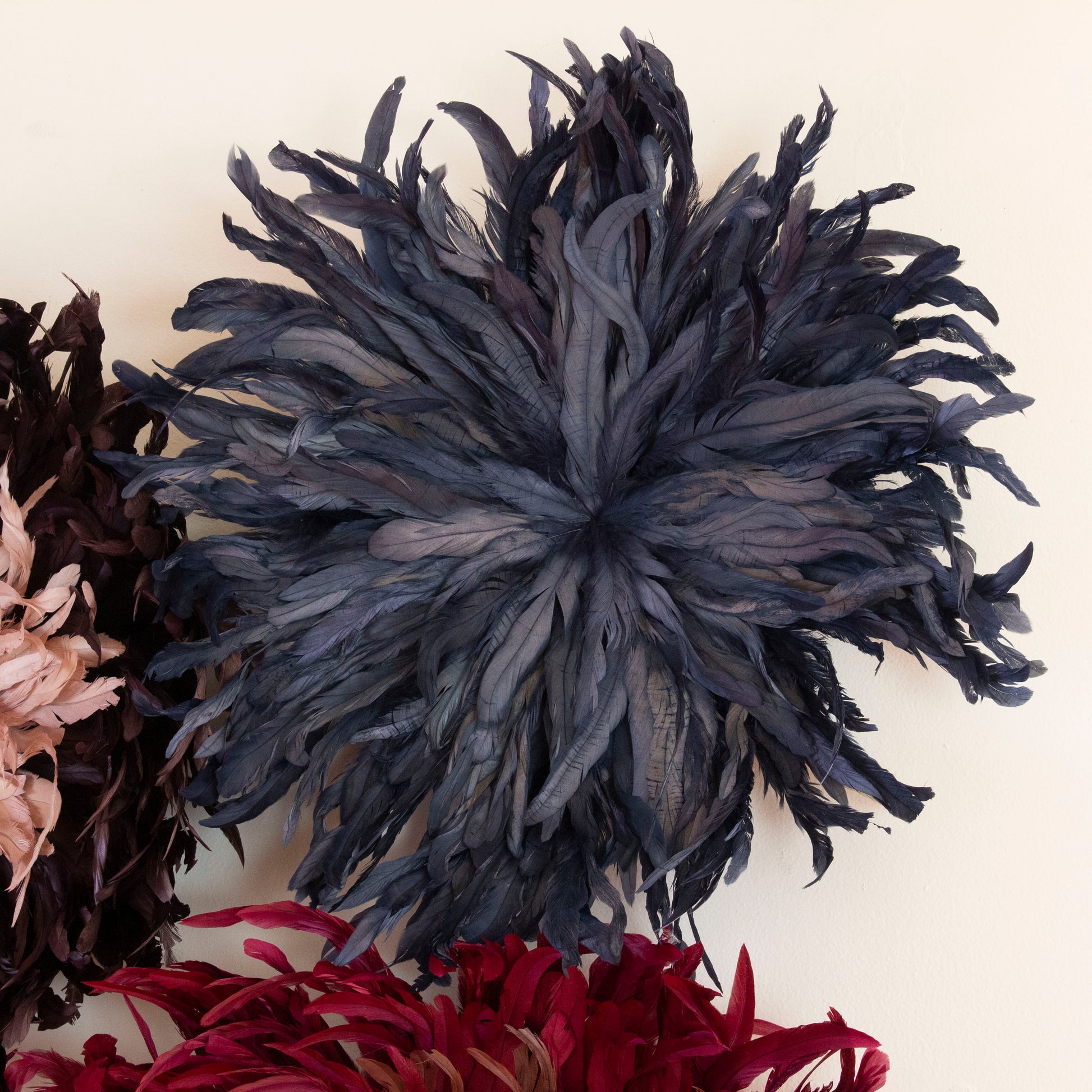 These Decorative Feather Medallions are handmade on a 11.5" diameter Wood Base and sawtooth hanger. With an overall diameter of approximately 15 inches, these feather decorative wall accents compliment any decor. Decorate to match your lifestyle and space, Pair them together or showcase them separately for a stunning display of natural beauty.