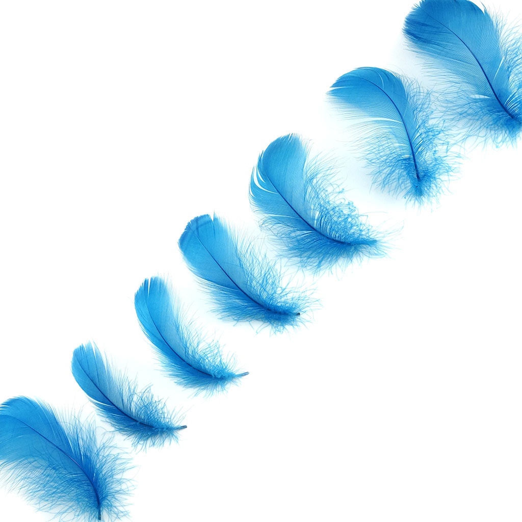 Loose Dyed Goose Coquille Feathers measure aproximately 3-5 inches long are soft, somewhat stiff, and fuzzy at the base. The top of the feather is smooth, flexible, and round with a natural cupping ranging between 1-1.5 inches wide. They are available in 1/4 bulk (approx 1,500-2,500 feathers) or 0.25 oz (approx. 90-120 feathers).