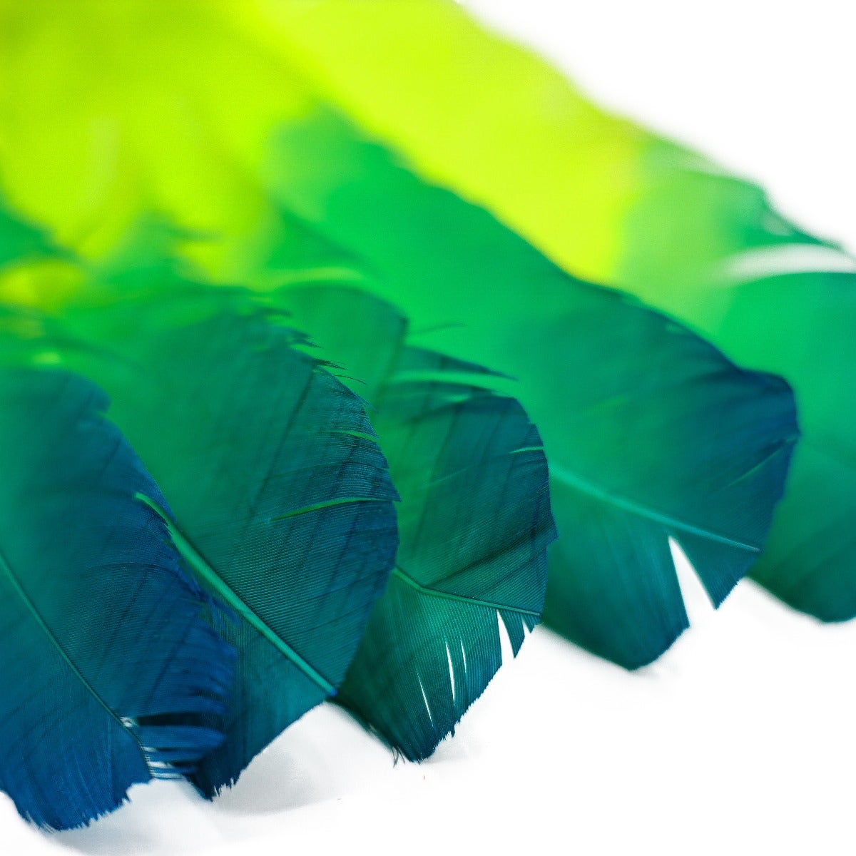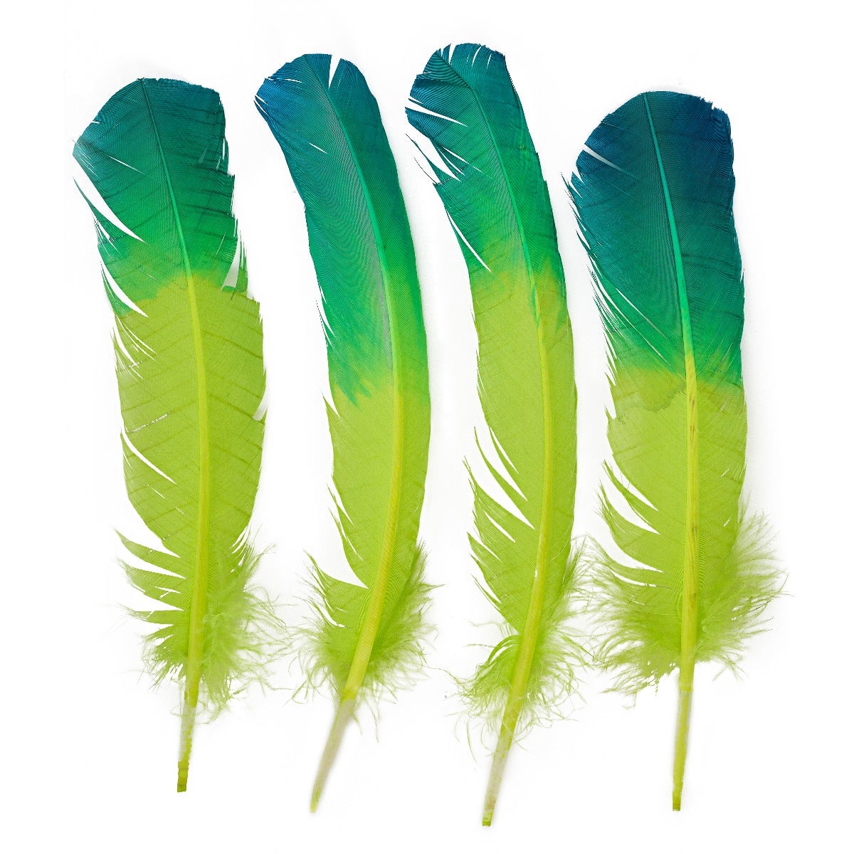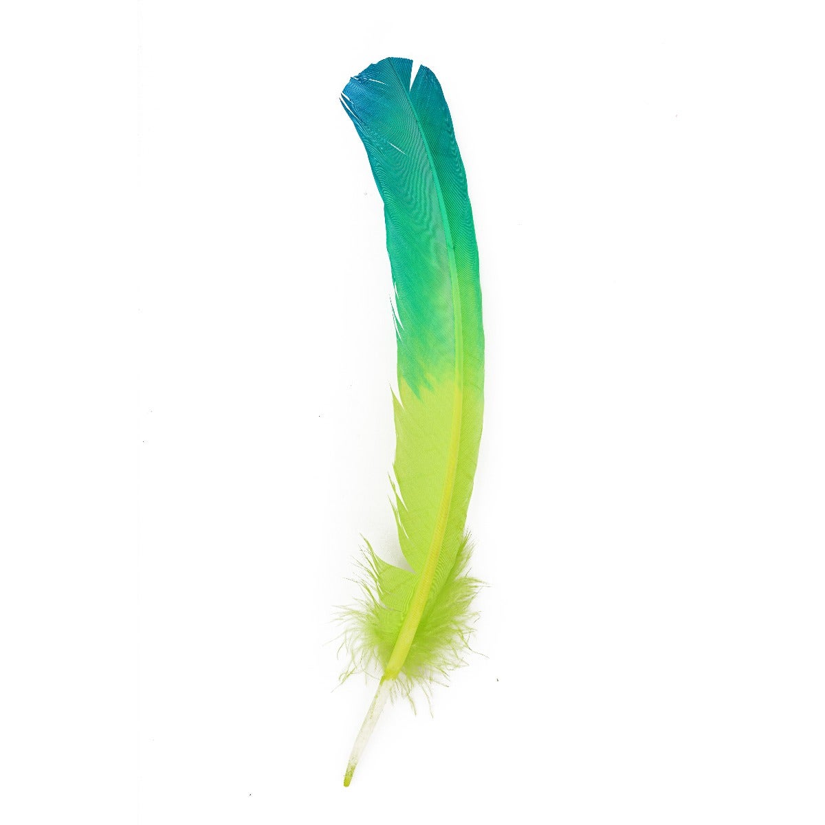 Bulk Two Tone Ombre Tipped Turkey Round Feathers Left Wing - 10-12” - 1/4 lb - Dark Turquoise - Lime