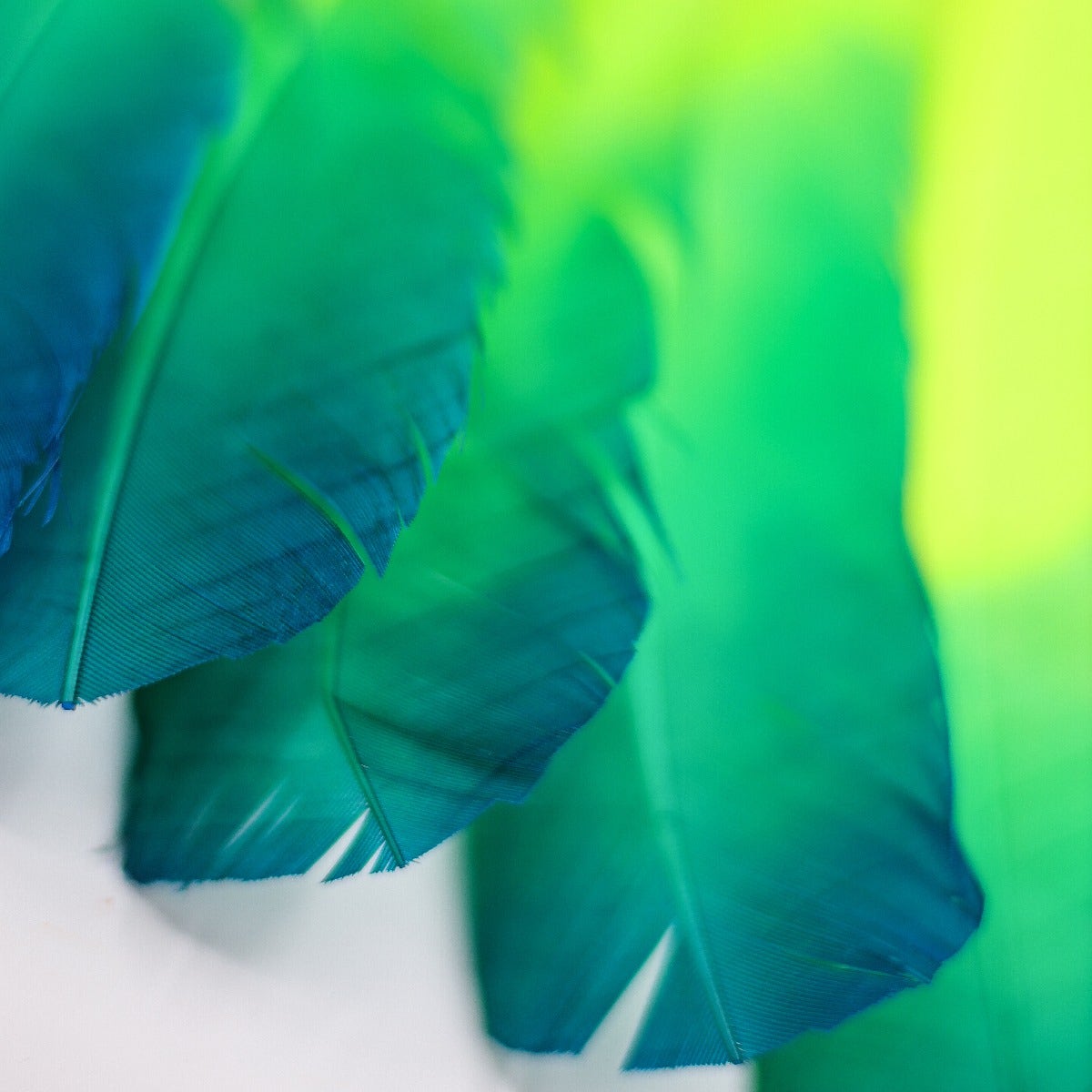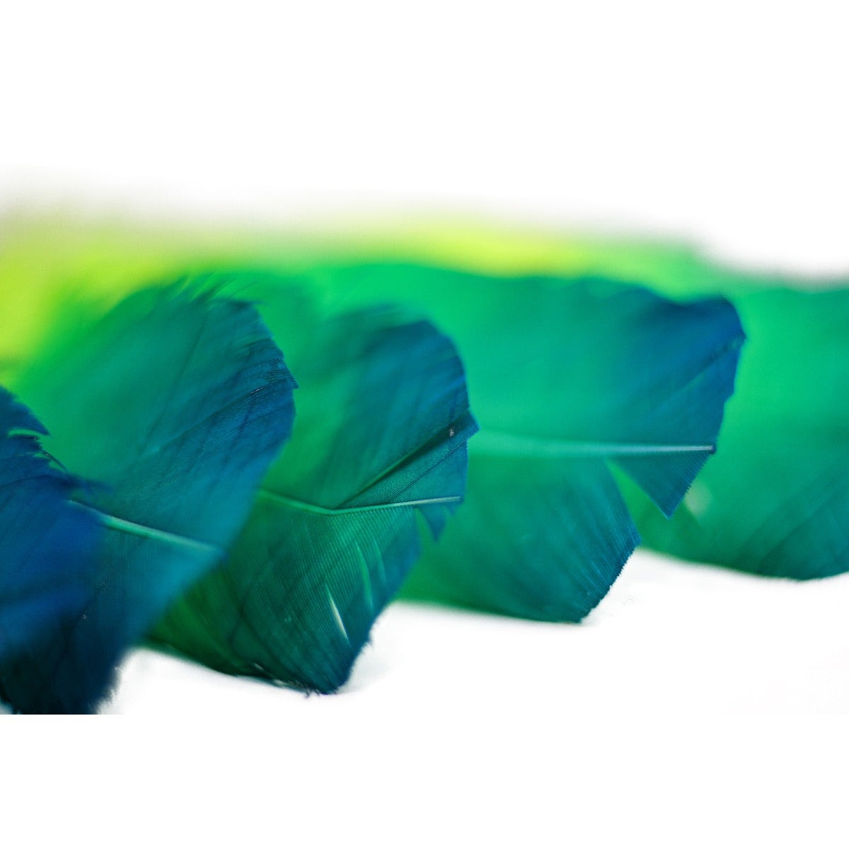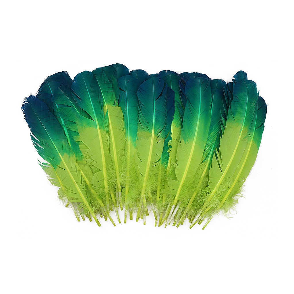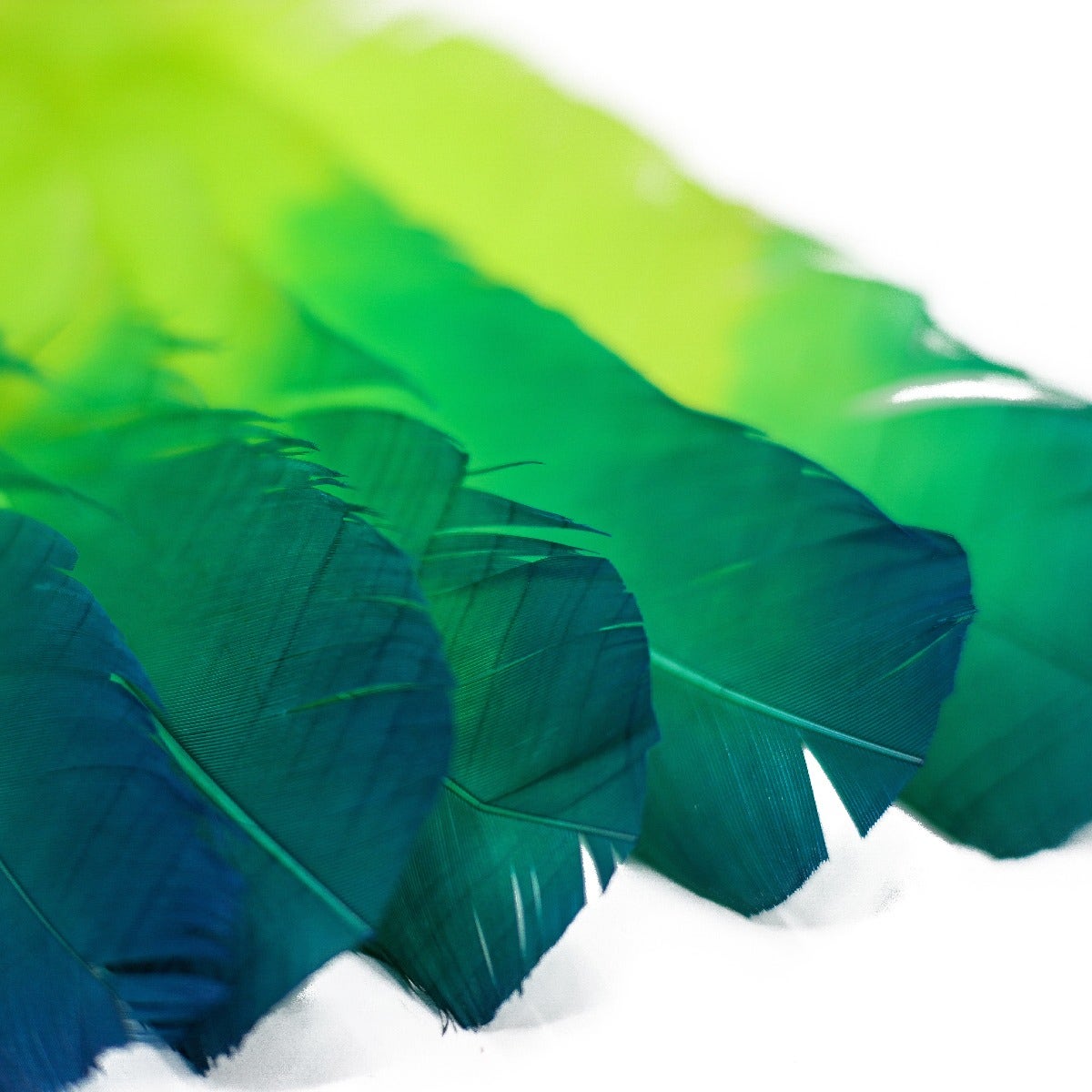 Bulk Two Tone Ombre Tipped Turkey Round Feathers Left Wing - 10-12” - 1/4 lb - Dark Turquoise - Lime