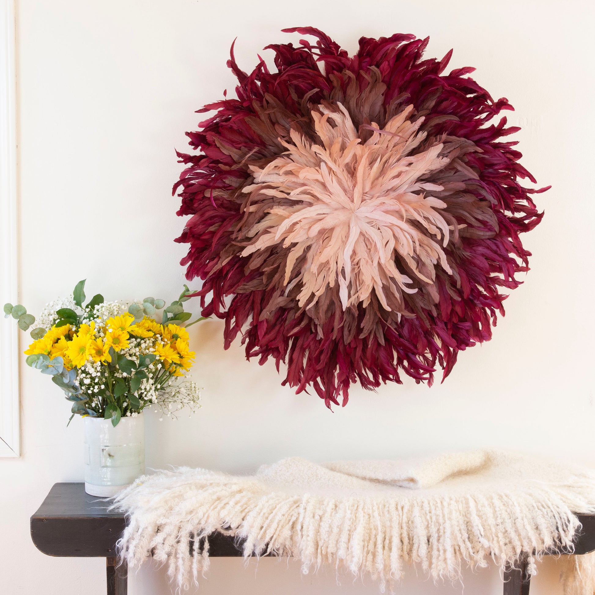 Burgundy, Mauve, Rose Gold Juju Hat Feather Wall Art