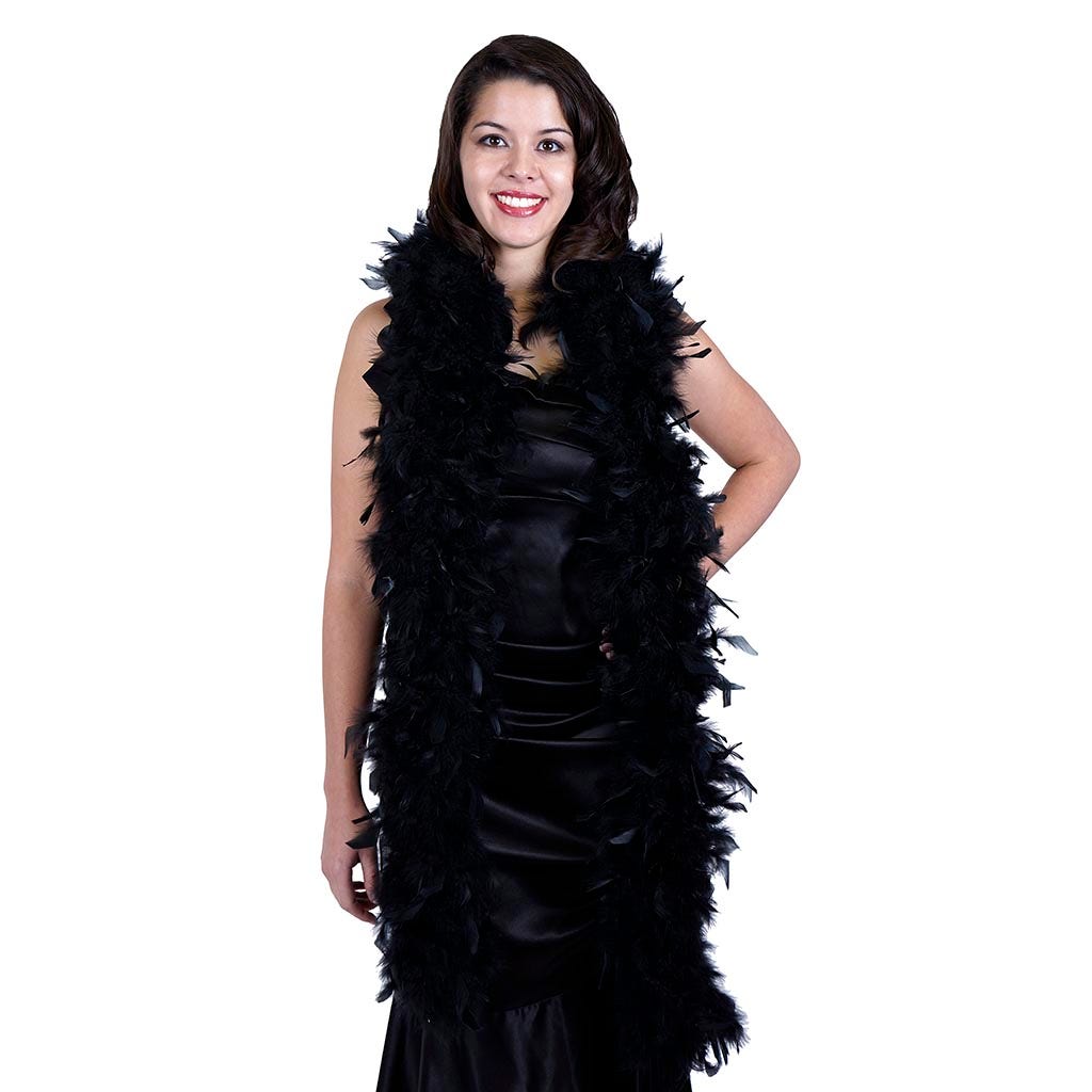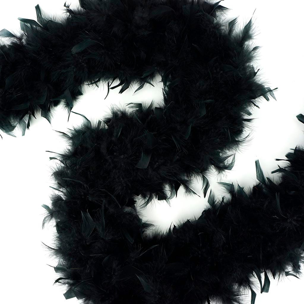 This black feather boa is the fullest and most luxurious of the thick feather boas made from chandelle. Our Zucker feather boa measures 2 yards (6 ft) long, and approx 7.5" in diameter.