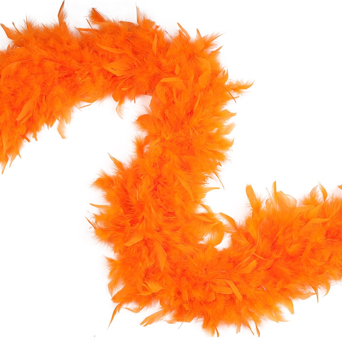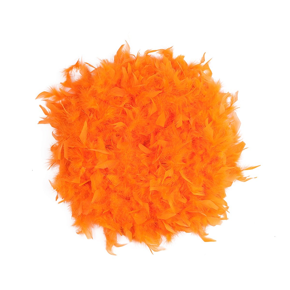This orange feather boa is the fullest and most luxurious of the thick feather boas made from chandelle. Our Zucker feather boa measures 2 yards (6 ft) long, and approx 7.5" in diameter.