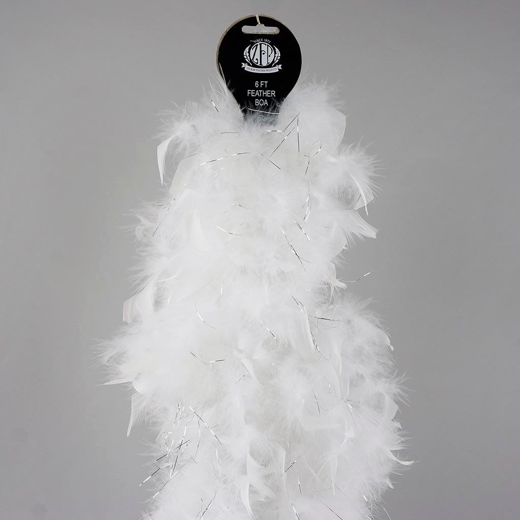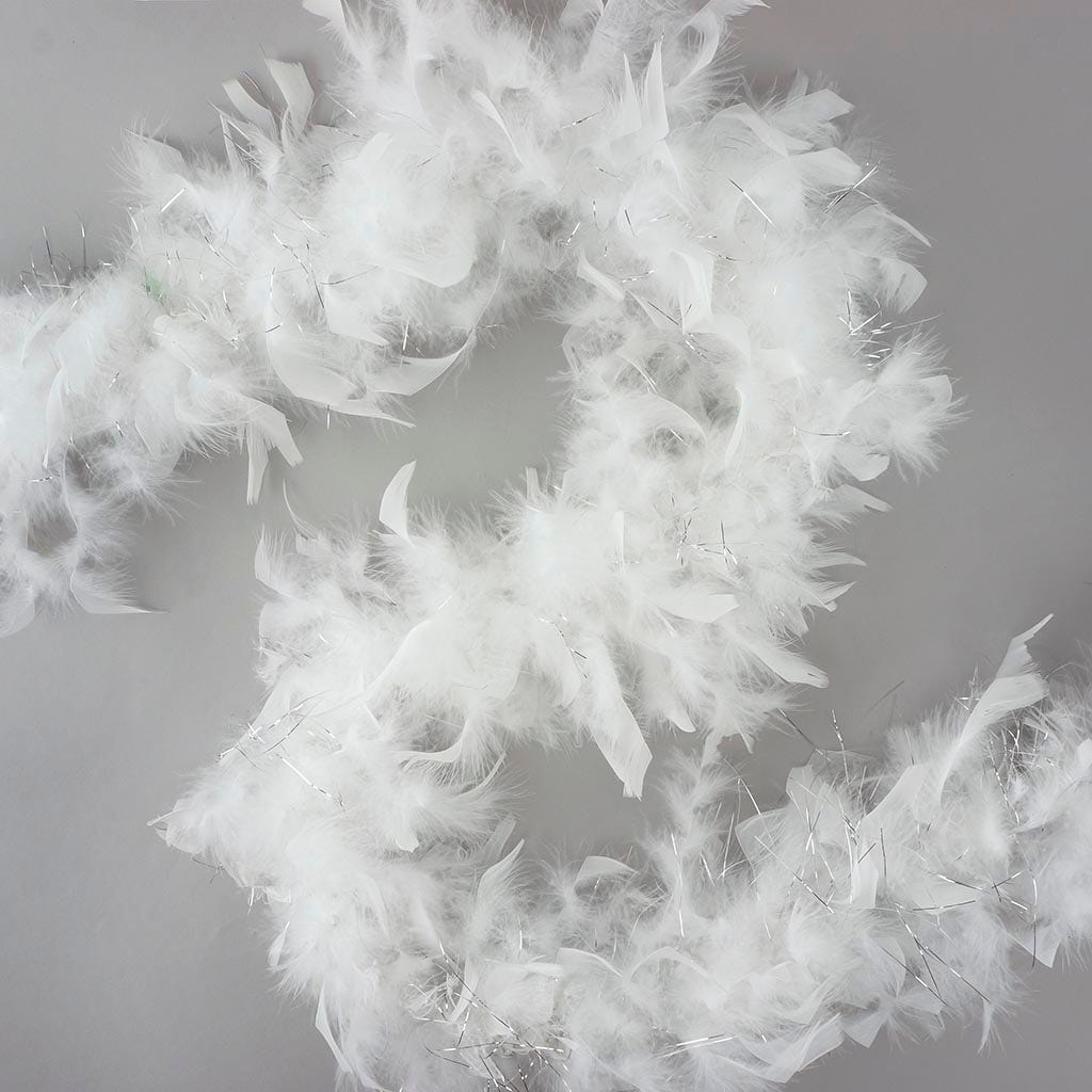 Chandelle Feather Boa - Lightweight - White with Silver Lurex