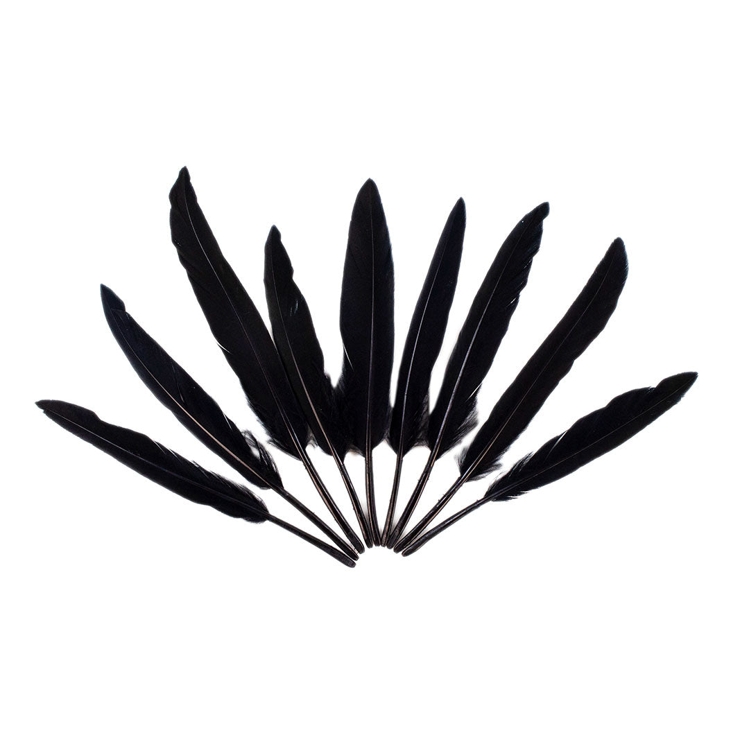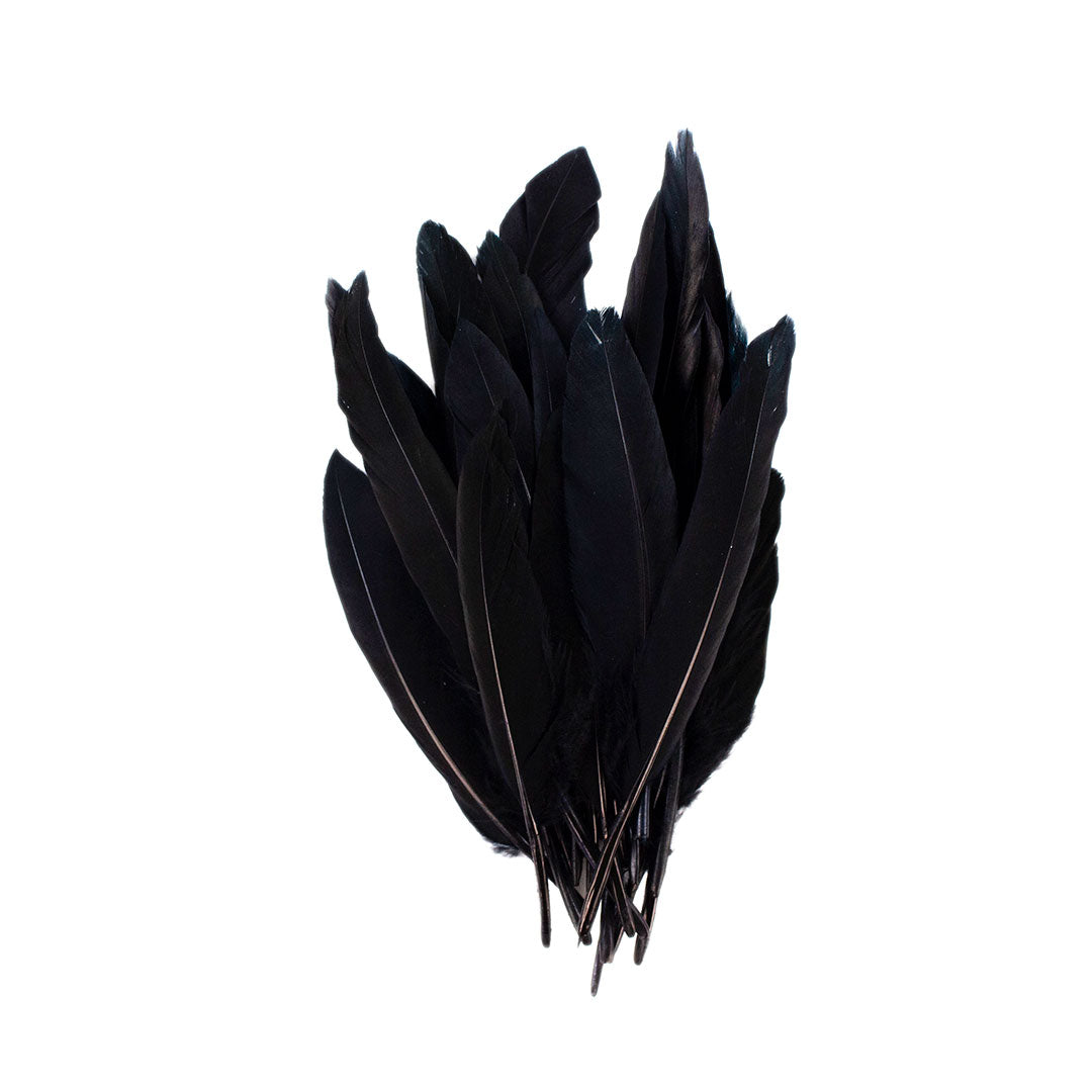 Duck Cosse Feathers approximately 3-4 inches long are small, stiff quill feather. They are a dyed vivid, solid colors.