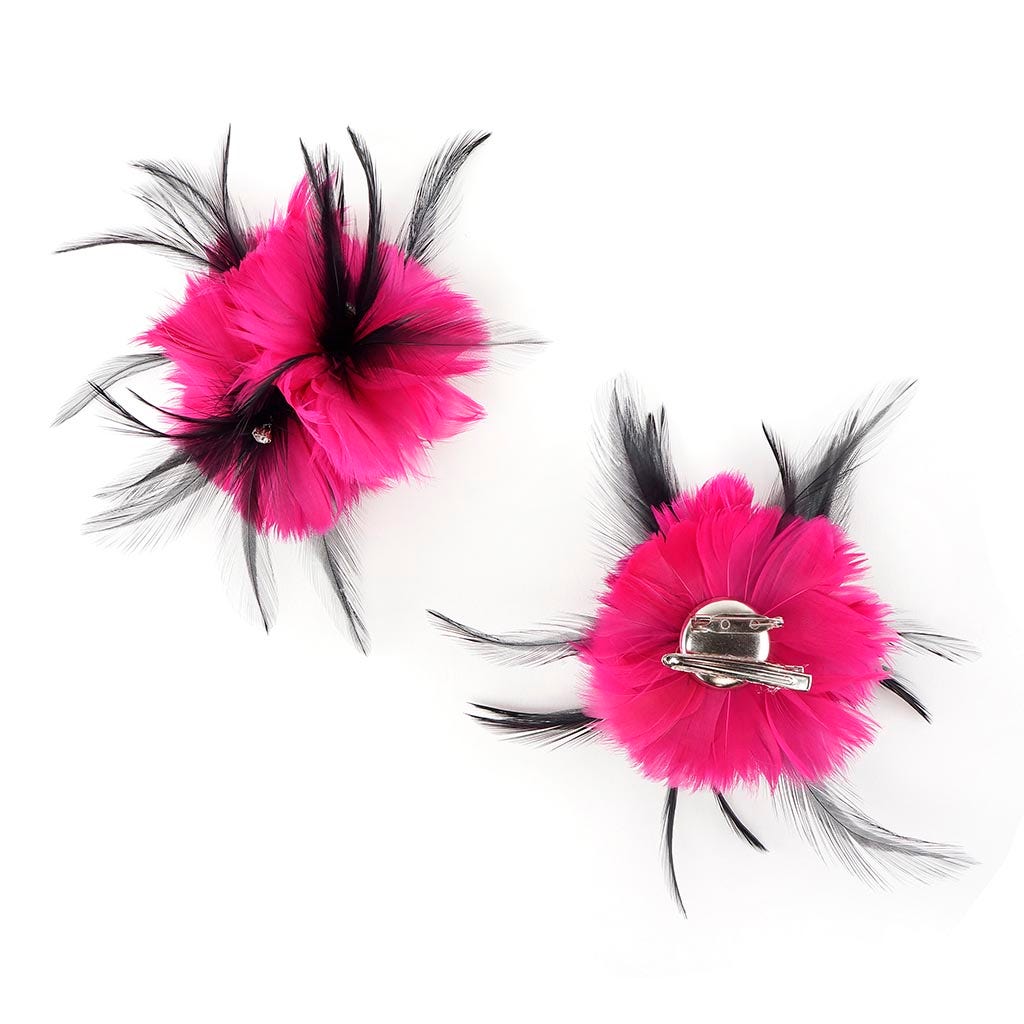 Feather Corsage-Coquille-Hackle-Jewel - Shocking Pink/Black