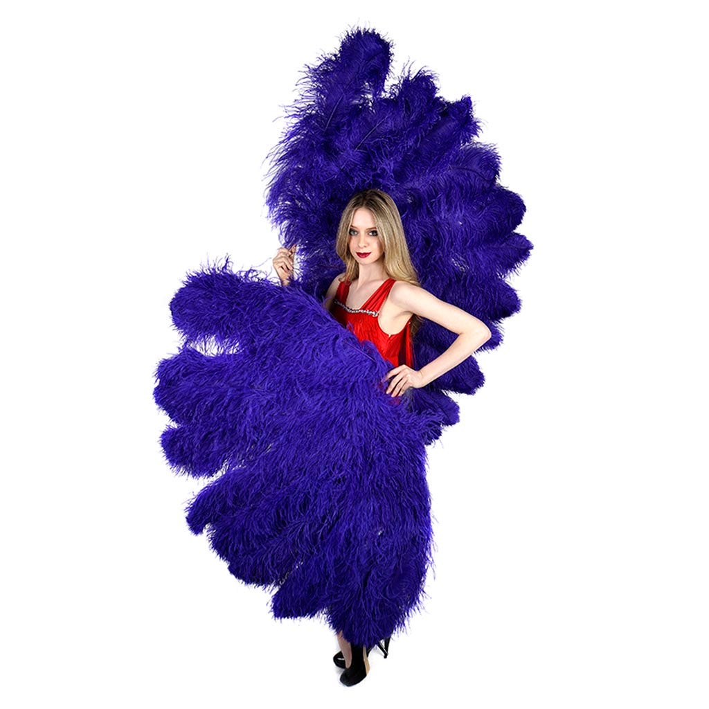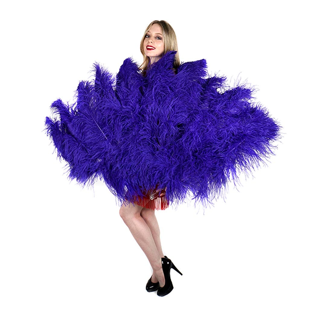 Prime Feather Fan w/Ostrich Femina Feathers measures 37x62 inches when fully opened and is made with two and a half Prime Ostrich Femina Feathers overlaping eachother and placed on each acrylic fan staves. This feather fan has 11 clear acrylic staves, each measureing 15.5 inches long. Absolutely breath taking, Prime Ostrich Femina Feathers are the widest and longest of the Ostrich feathers.