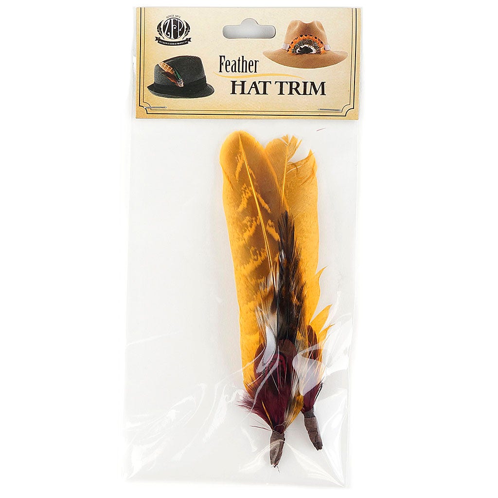 Pheasant-Hackle Feather Hat Trims Black/Fig/Marigold/Natural