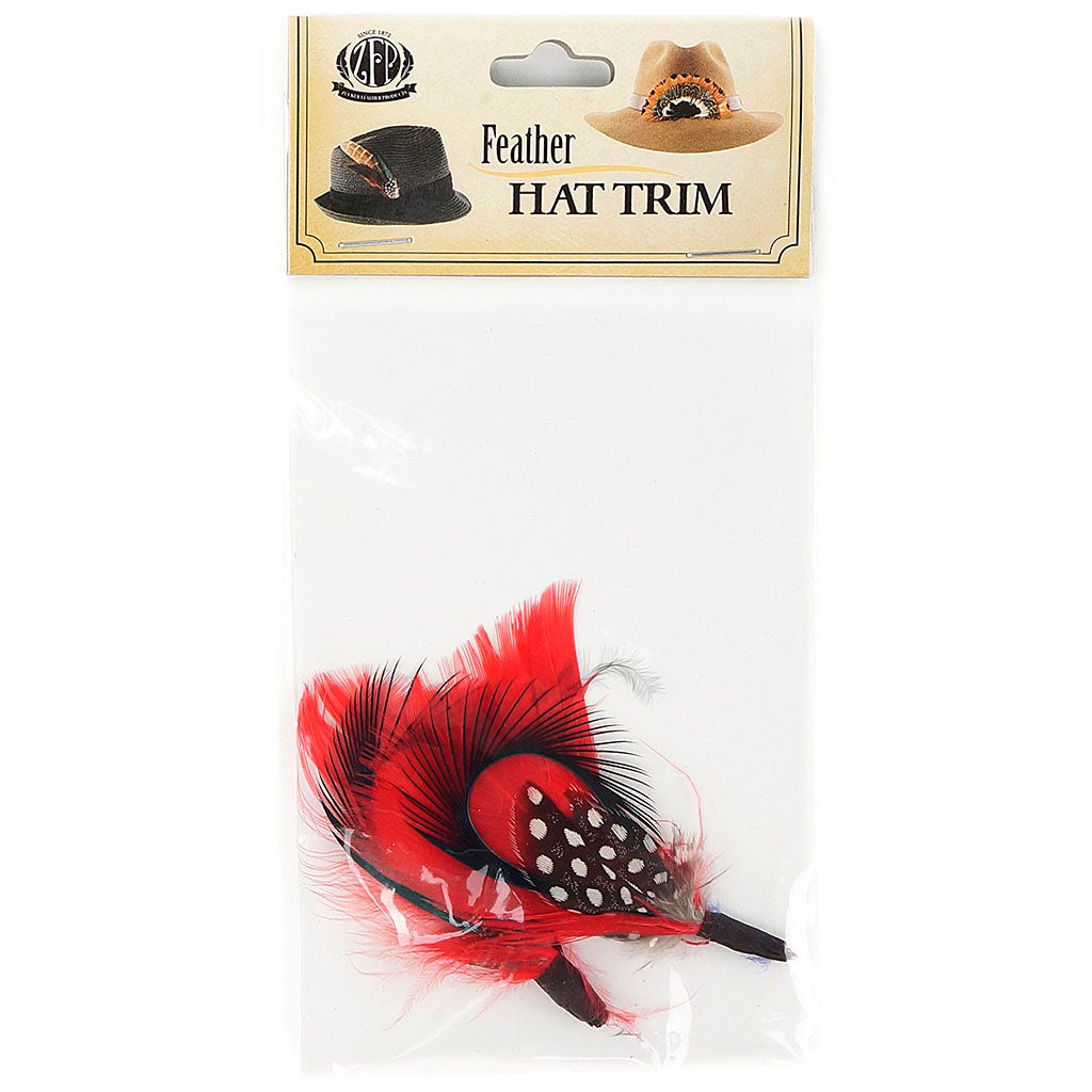 Turkey-Guinea-Goose Biot Feather Hat Trims- Black/Natural/Red