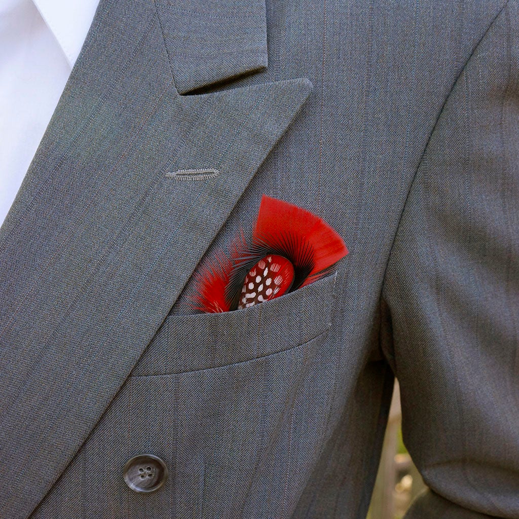 Add a new look with this Feather Hat Trim made of dyed Turkey, natural Guinea, and Goose Biots feathers measuring approximately 2-3 inches. Each feather trim is wrapped with floral tape near the tip of the quill and can be easily added to your favorite hat or pinned to the lapel of a jacket. Each package contains two hat trims.