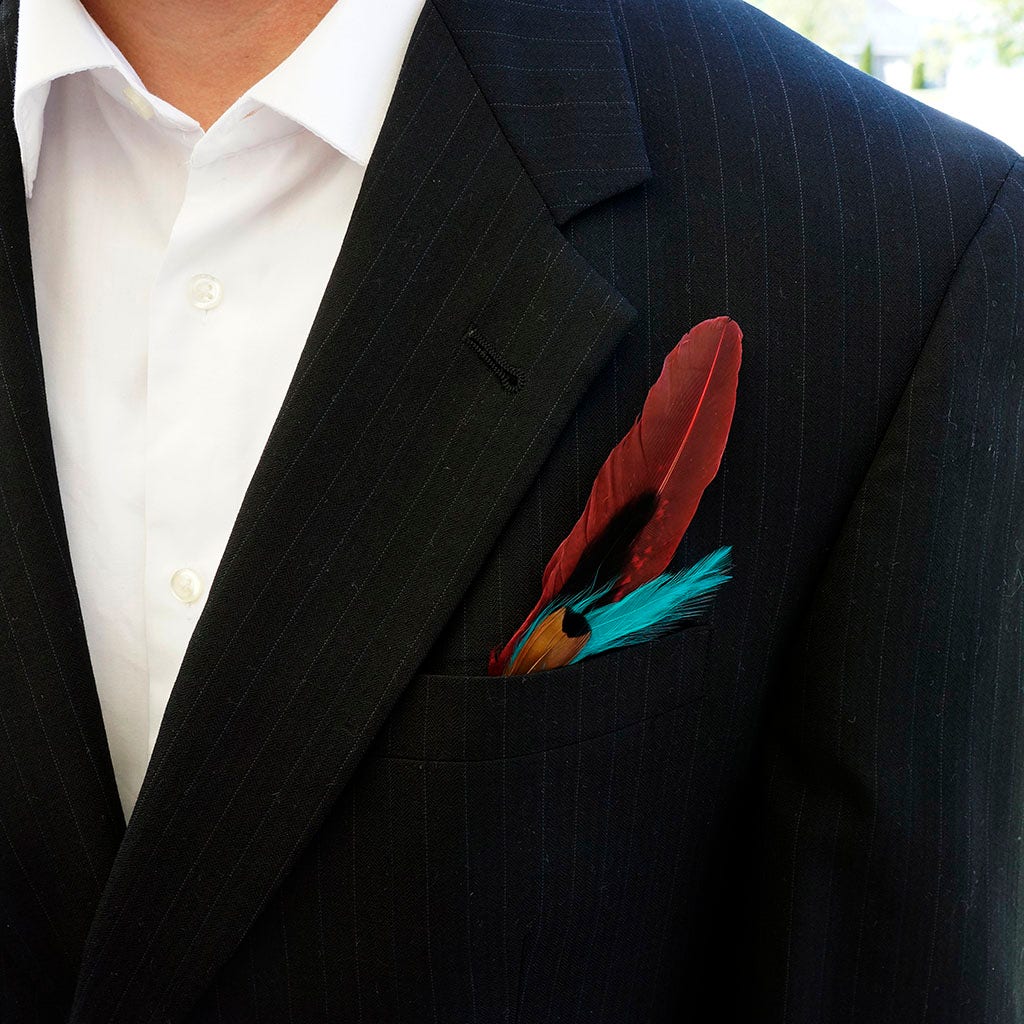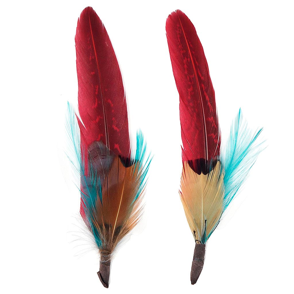 Pheasant Hackle Feather Hat Trims - Dark Aqua- Tango Red - Natural