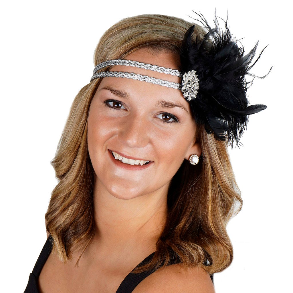 This headband is made with 5-9" silver ostrich feather and 4-6" white schlappen feathers finished with a rhinestone jewel embellishment.WHOLESALE PRICING: Wholesale Pricing is only applied when checking out with Shopify Payments or Credit Card. PayPal and 'Amazon Pay' are not compatible with Wholesale Discounts