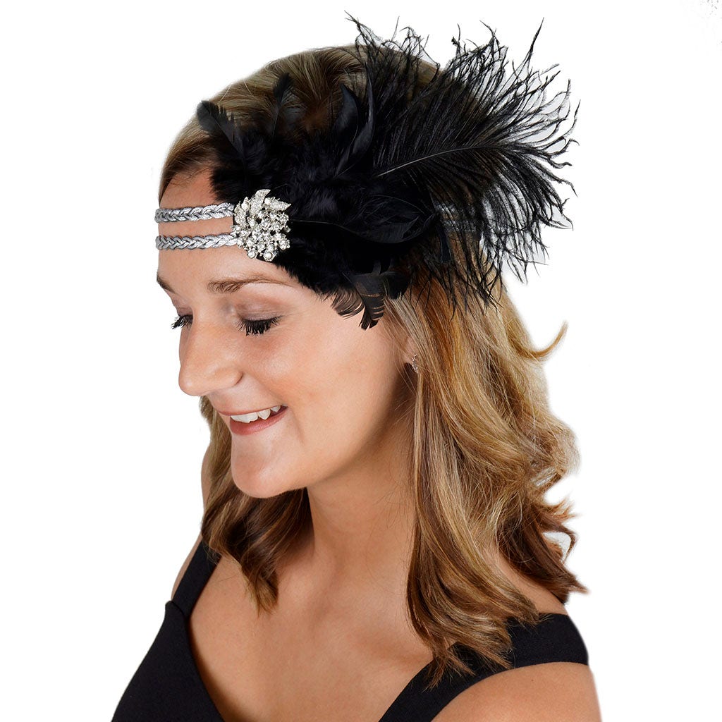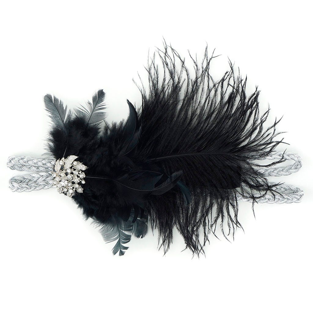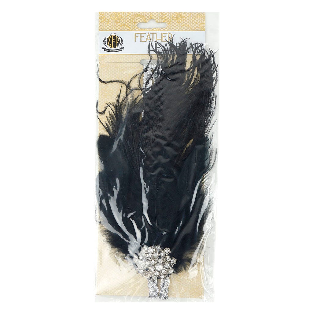 Feather Headband w/Ostrich/Schlappen Black/Silver