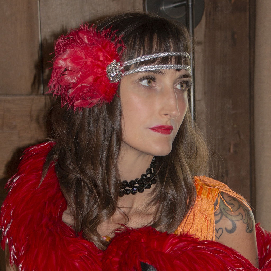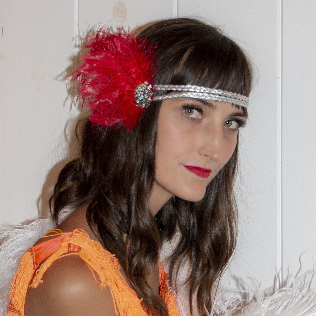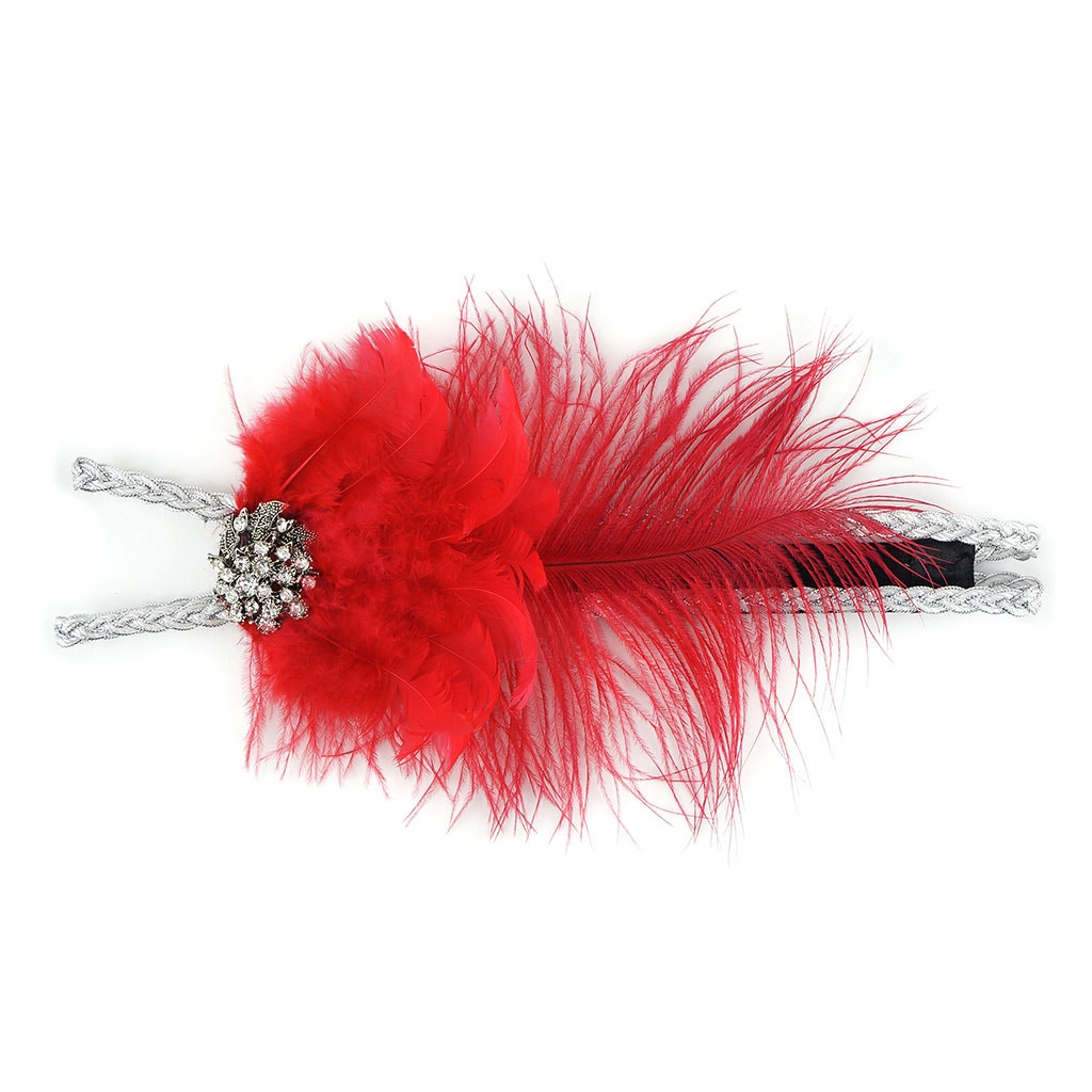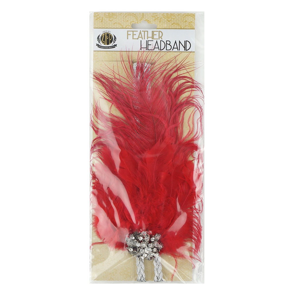 Feather Headband w/Ostrich/Schlappen Red/Silver
