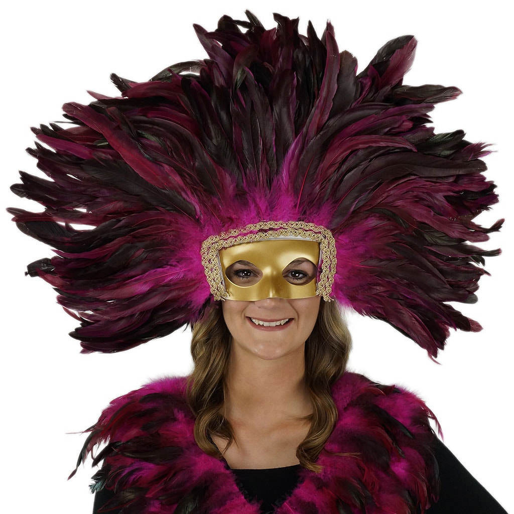 Feather Headdress Mask-Dyed - Shocking Pink