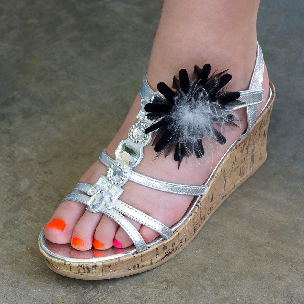 Feather Shoe Clip w/Marabou-Hackle-Felt - White/Black