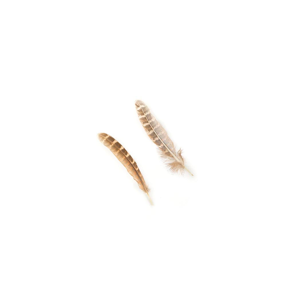 These feathers are varying shades of brown with dark natural markings throughout the feather and a stiff center quill.WHOLESALE PRICING: Wholesale Pricing is only applied when checking out with Shopify Payments or Credit Card. PayPal and 'Amazon Pay' are not compatible with Wholesale Discounts