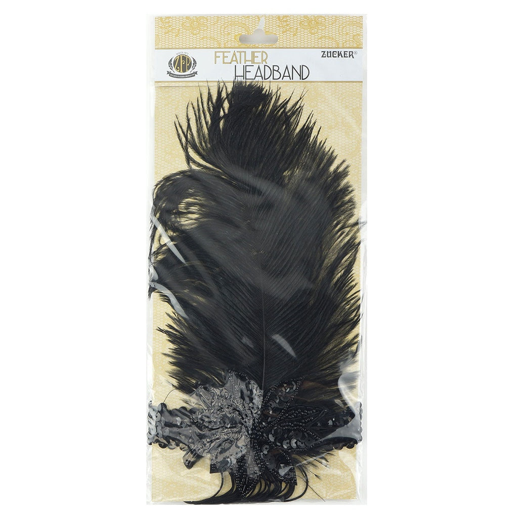 Flapper Feather Headband w/Tassel - Black and Black