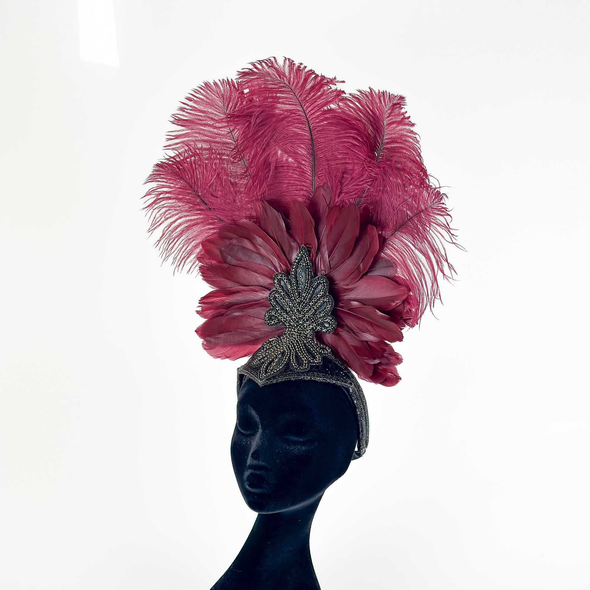 Inspired by the timeless elegance of Hollywood showgirls, this feather headpiece captures the glitz and grace of Hollywood’s golden age. Lush ostrich and goose feathers sweep upward in glamorous motion, while a sparkling rhinestone appliqué shines against its removable glitter base. Designed for comfort and security, this piece features both an elastic band and hair clip, ensuring it stays perfectly in place while you dance the night away. Available as a set— create your own show-stopping look today. Additional Costume accessories not included.