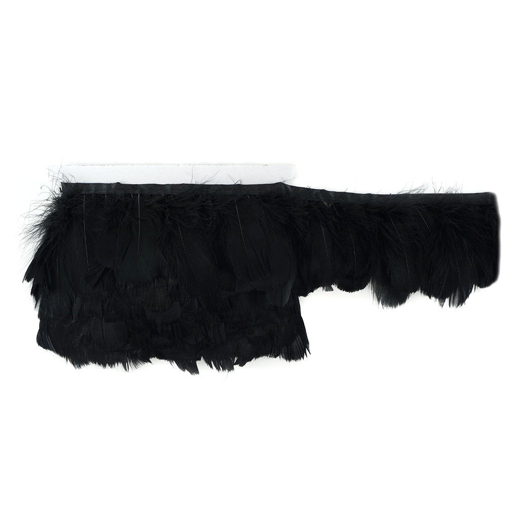 This beautiful Sewing Trim has soft Goose feathers measuring 3 inches long (7.5 cm) There are approx 4 feathers per inch for a full lush look.contains 5 yards of fringe with dyed feathers Sewn to a matching satin blend bias tape for easy application.