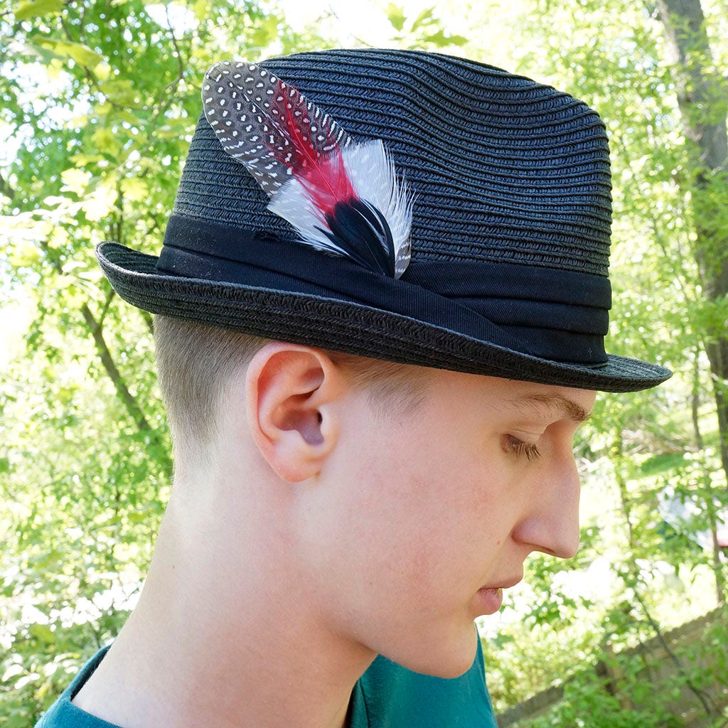 Add a touch of class with this elegant Feather Hat Trim made with natural Guinea, dyed Rooster and Turkey feathers measuring approximately 5-6 inches.WHOLESALE PRICING: Wholesale Pricing is only applied when checking out with Shopify Payments or Credit Card. PayPal and 'Amazon Pay' are not compatible with Wholesale Discounts