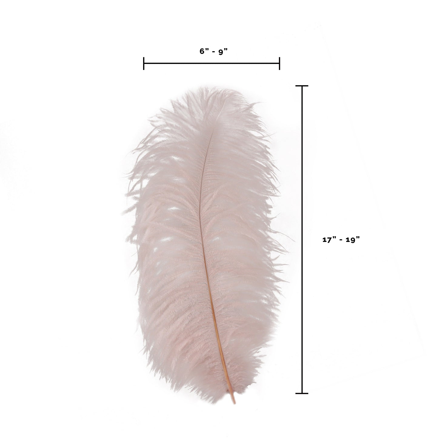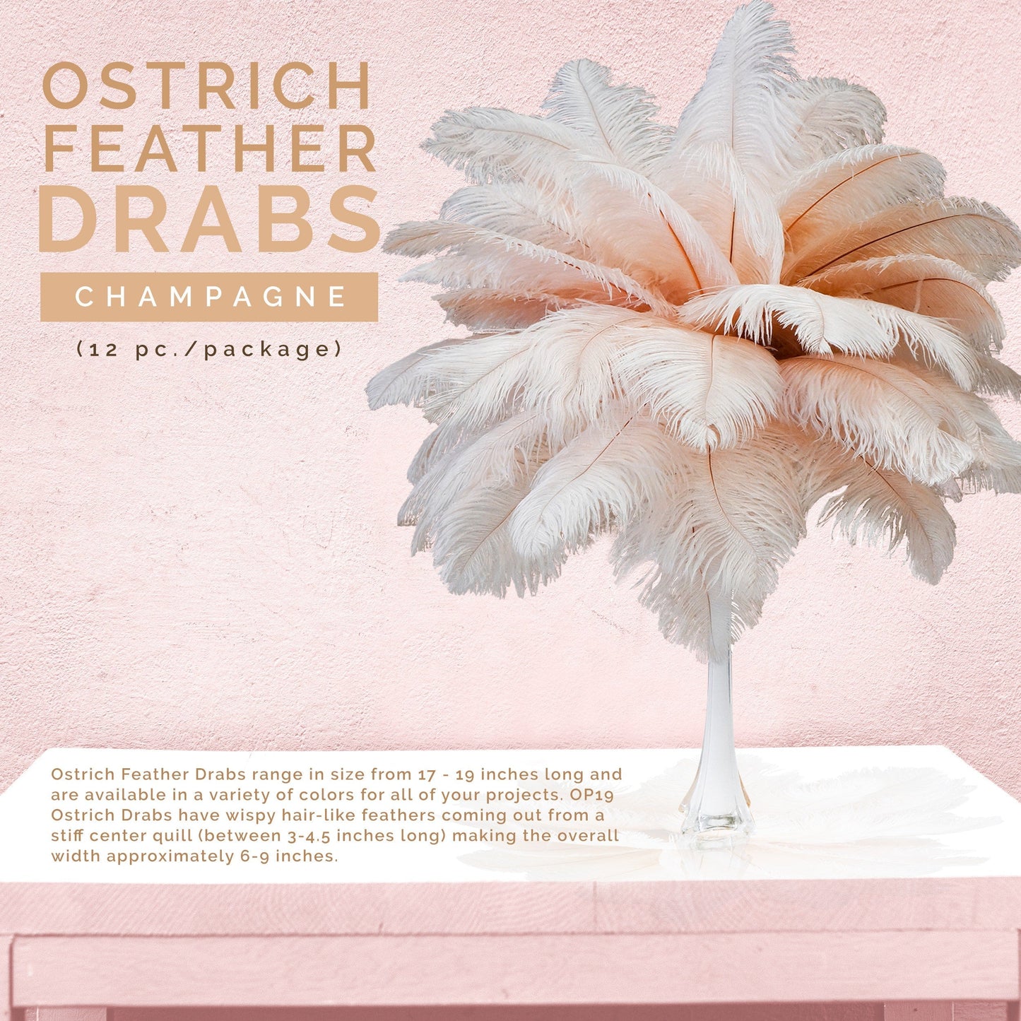 Ostrich Drabs are approximately 17" and up. The 1 piece and 12 piece packages of these long ostrich feathers are hand selected. The 25 piece packages are bulk, non-selected.