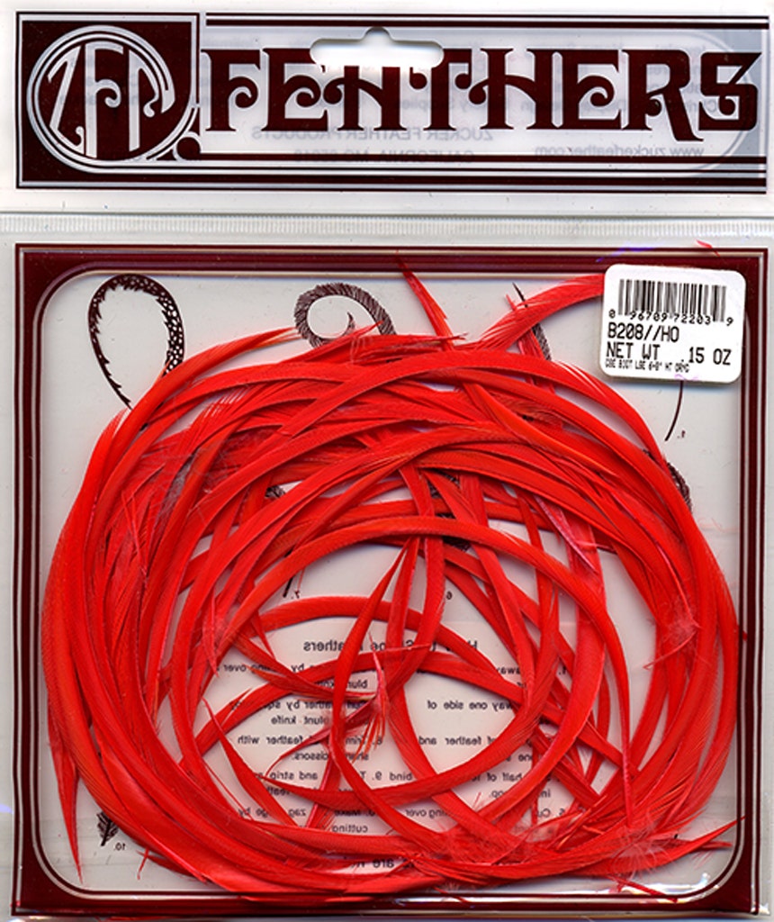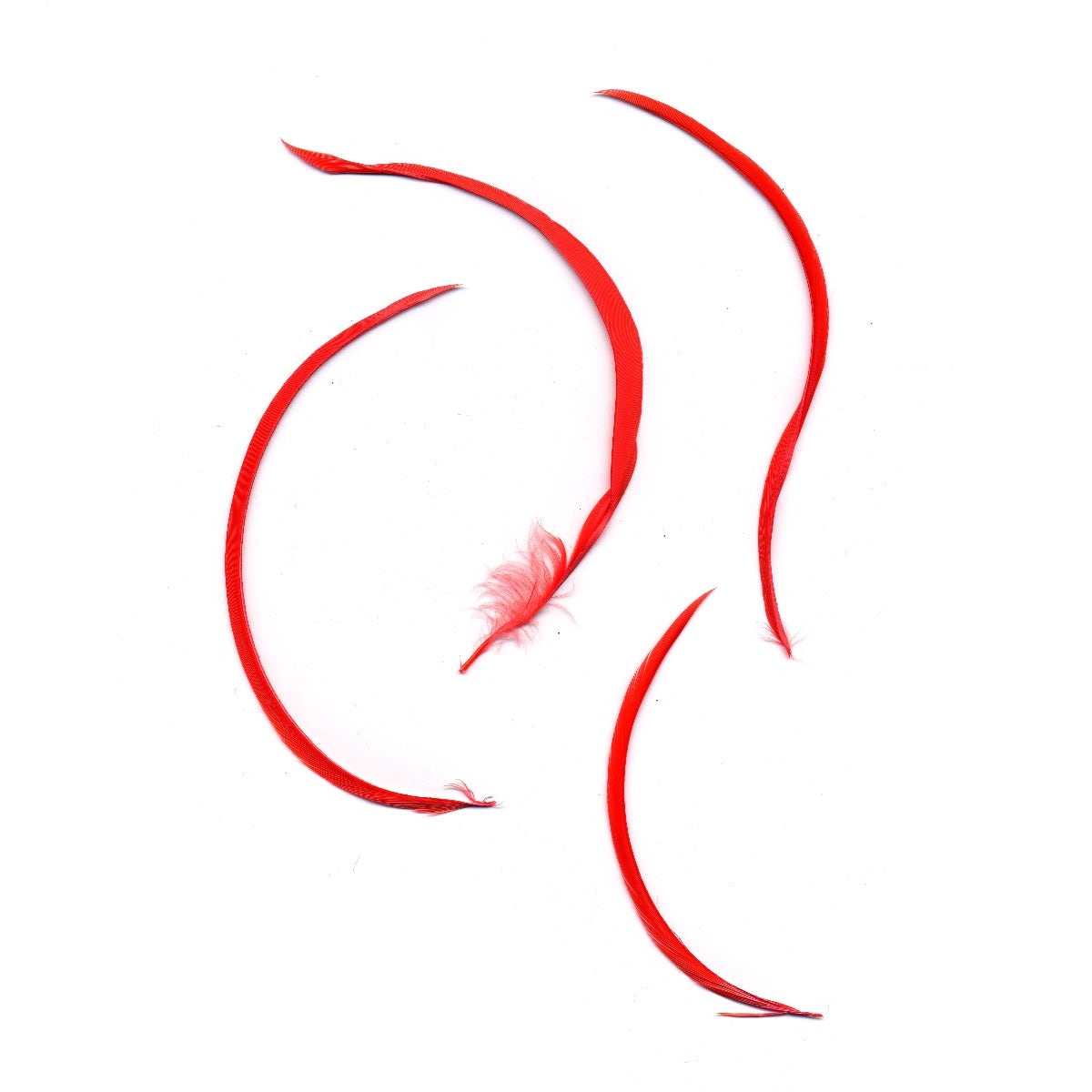 Loose Goose Biot Feathers Dyed Solid Colors are approximately 6-8 inches long and come in a .15 ounce package. There are approximately 18 feathers per package. Goose biots comes from the front row of feathers on the wing. This feather is stiff and narrow.