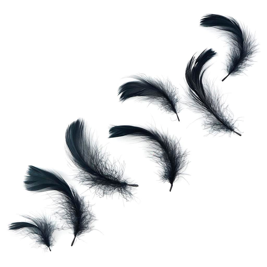 Loose Goose Coquille Feathers Dyed Solid Colors are approximately 3-5 inches and come in a .25 ounce package. There are approximately 168 feathers per package. The feather is fuzzy at the base and the top of the feather is smooth with a natural cupping at the top. It is soft at the top with a little stiffness at the bottom.