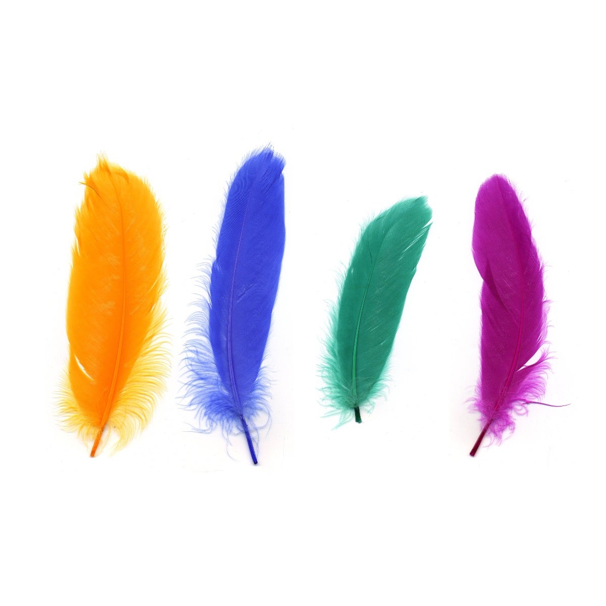Loose Goose Satinettes Feathers Dyed Mixed Colors are approximately 4.5-6 inches long and come in a .25 ounce package. There are approximately 46 feathers in assorted colors per package.