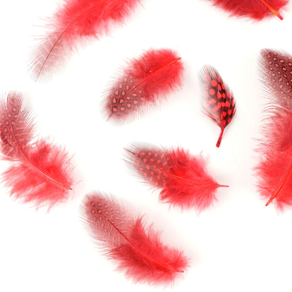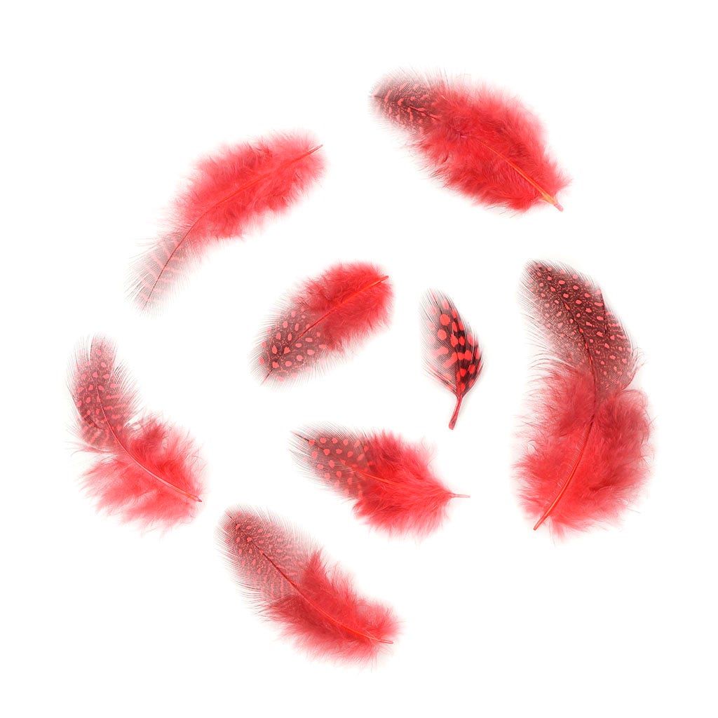 Loose Dyed Guinea Plumage Feathers are approximately 1-4 inches long and come in a .10 ounce package. There are approximately 50 feathers per package/per color.