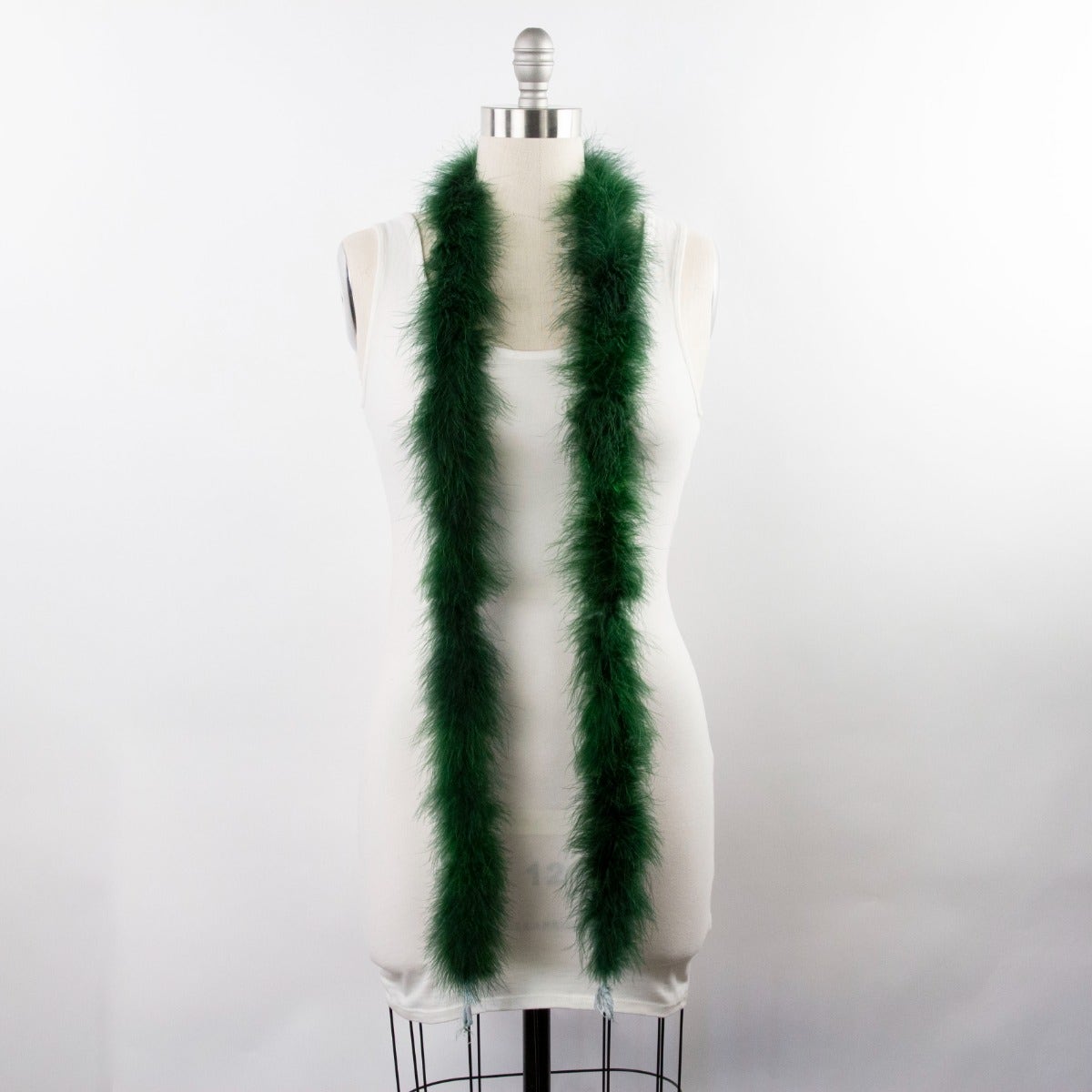 This fluffy feather boa is the leading seller marabou boa based on quality and price. Each forest green feather boa is 6 feet in length and approximately 2.5" in diameter, our mid size thickness marabou boa.