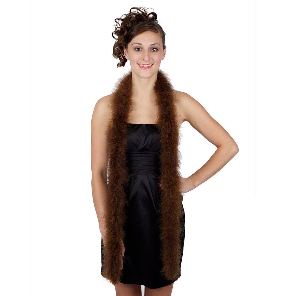 This fluffy feather boa is the leading seller marabou boa based on quality and price. Each brown feather boa is 6 feet in length and approximately 2.5" in diameter, our mid size thickness marabou boa.