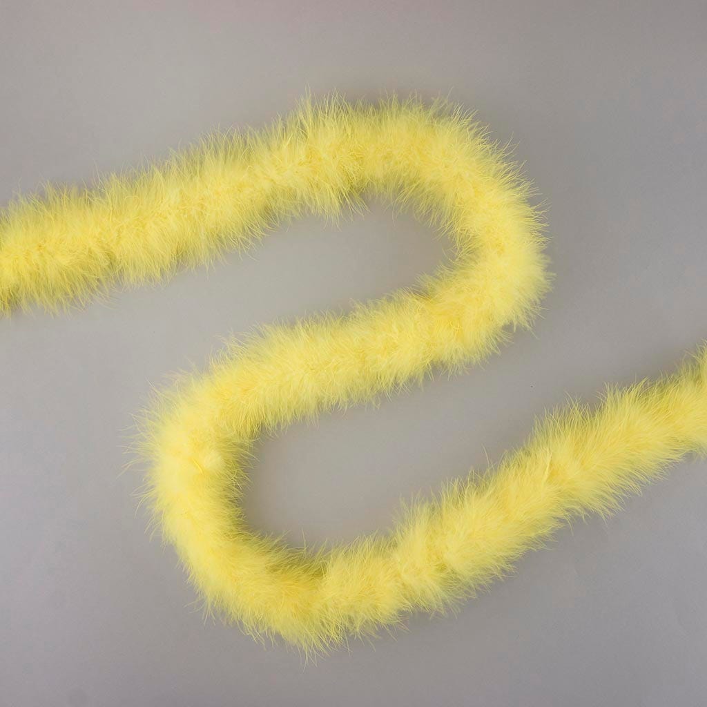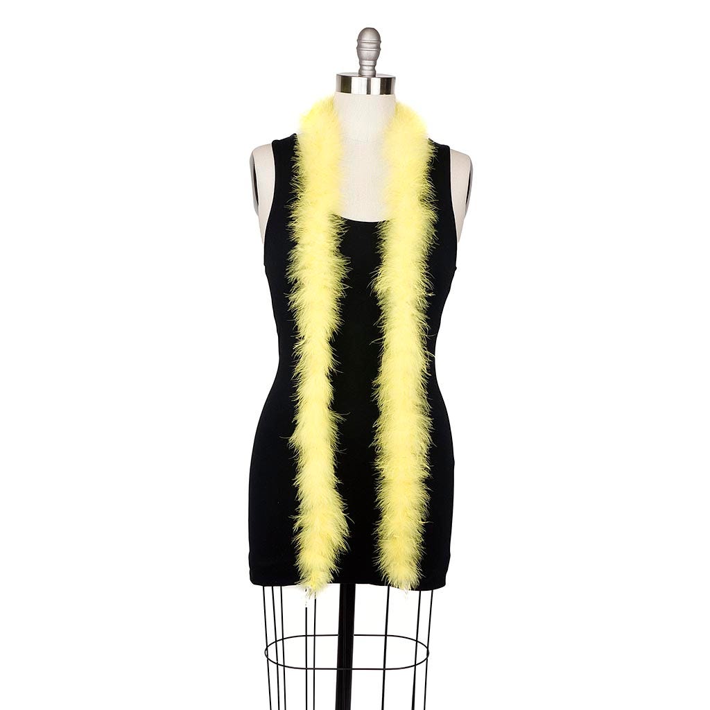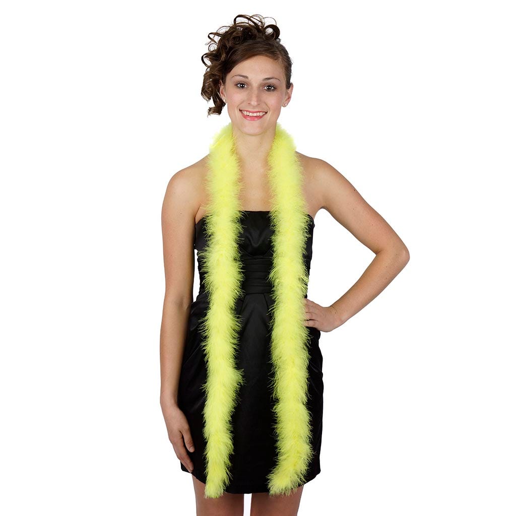 This fluffy feather boa is the leading seller marabou boa based on quality and price. Each neon yellow feather boa is 6 feet in length and approximately 2.5" in diameter, our mid size thickness marabou boa.
