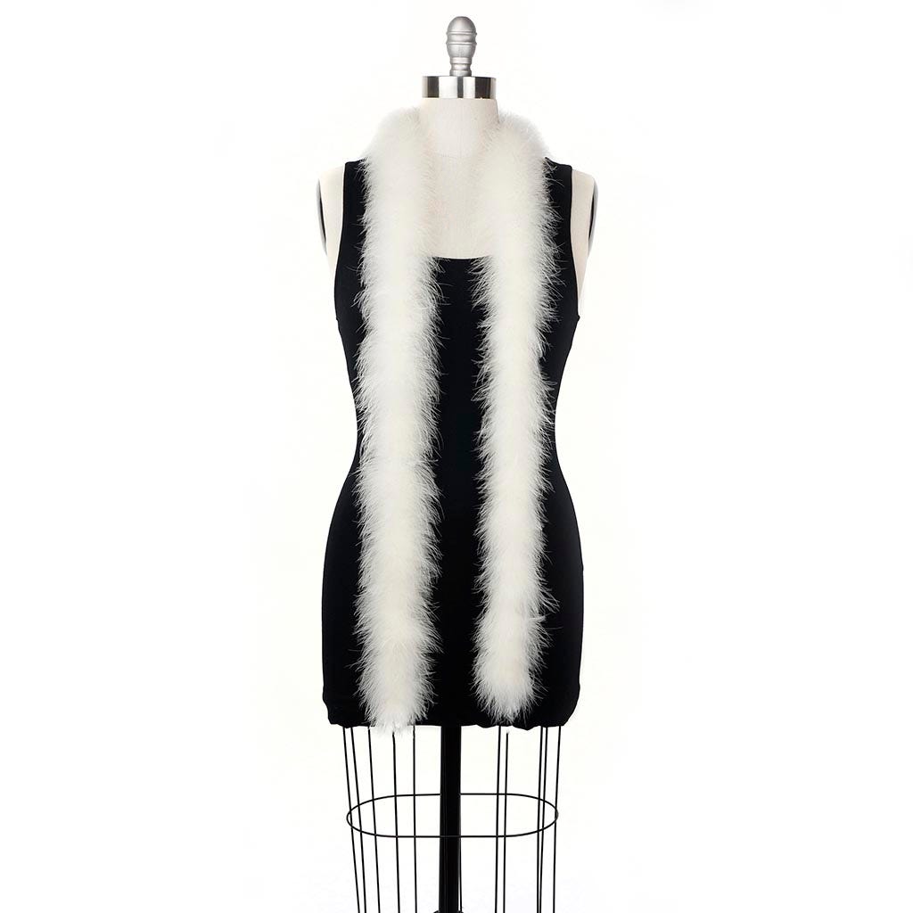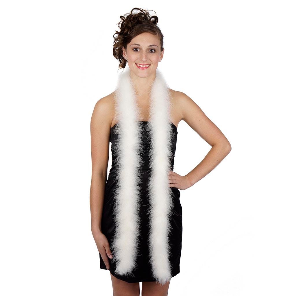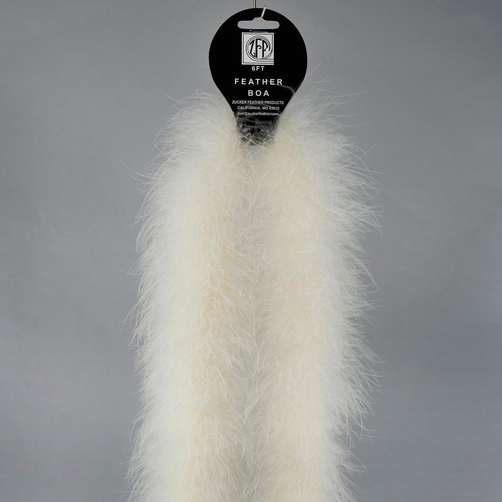 This fluffy feather boa is our fullest ivory marabou boa. This thick feather boa measures 6 ft long by approximately 3" in diameter. Our Zucker feather boa can be cut without unraveling as feathers are sewn on to a cotton cord.