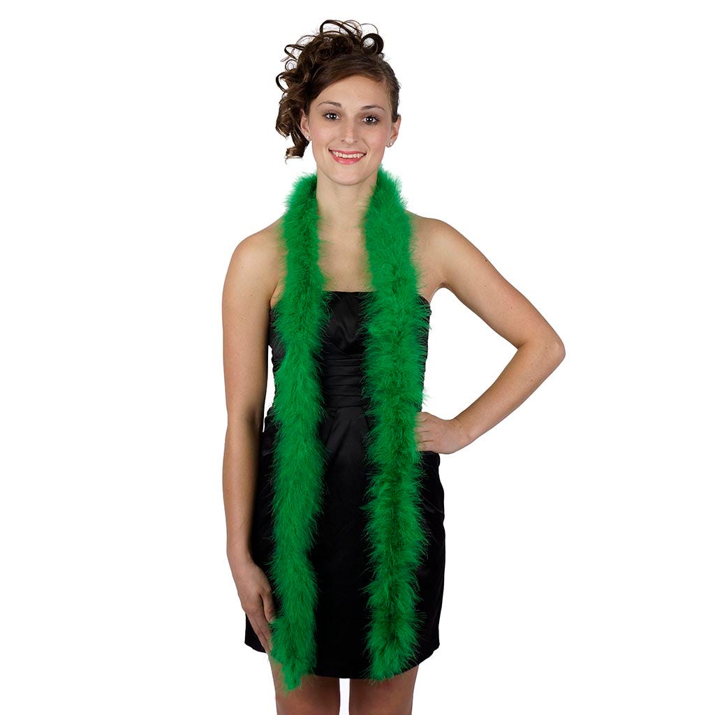 This fluffy feather boa is the leading seller marabou boa based on quality and price. Each green feather boa is 6 feet in length and approximately 2.5" in diameter, our mid size thickness marabou boa.