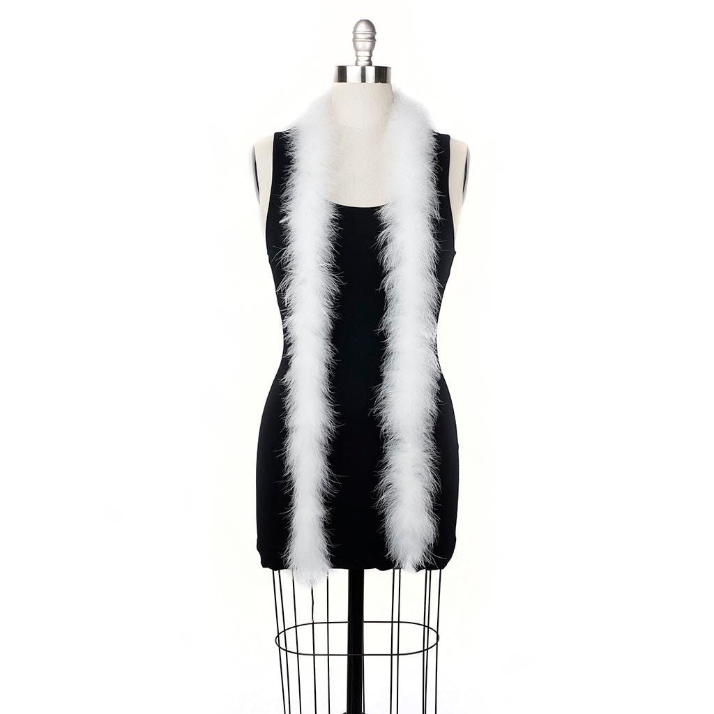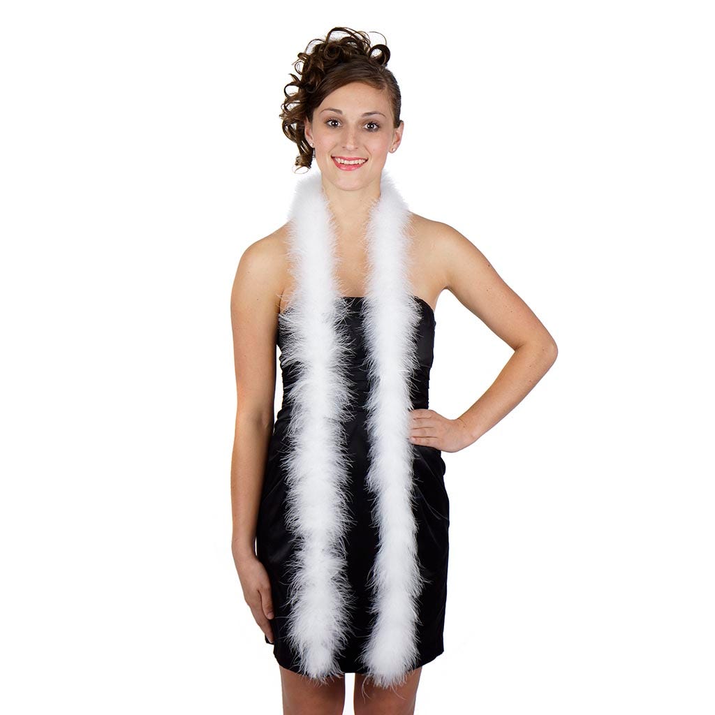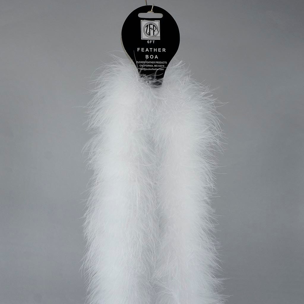 This fluffy boa is our fullest white marabou boa. This thick feather boa measures 6 ft long by approximately 3" in diameter. Our Zucker feather boa can be cut without unraveling as feathers are sewn on to a cotton cord.