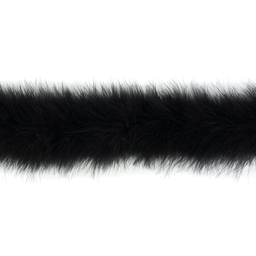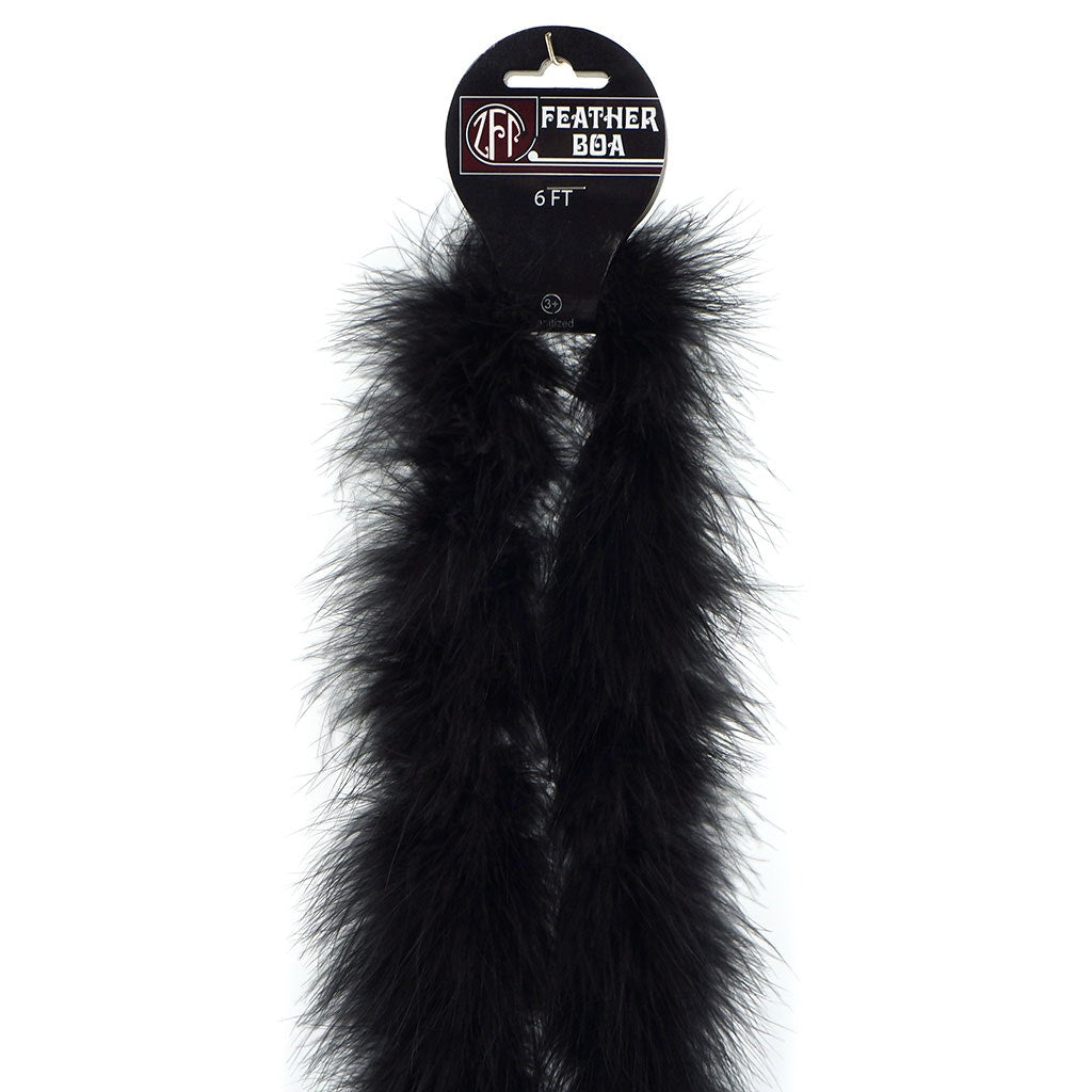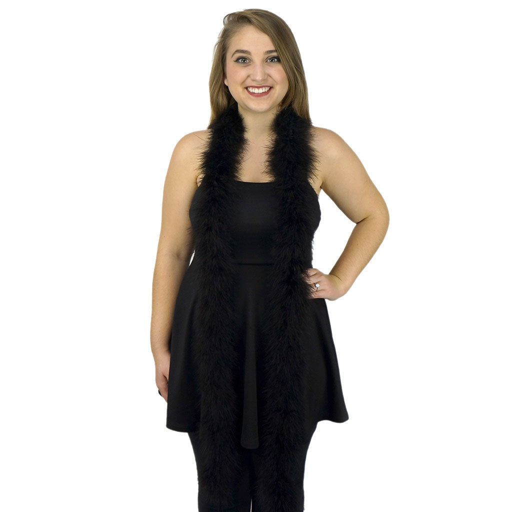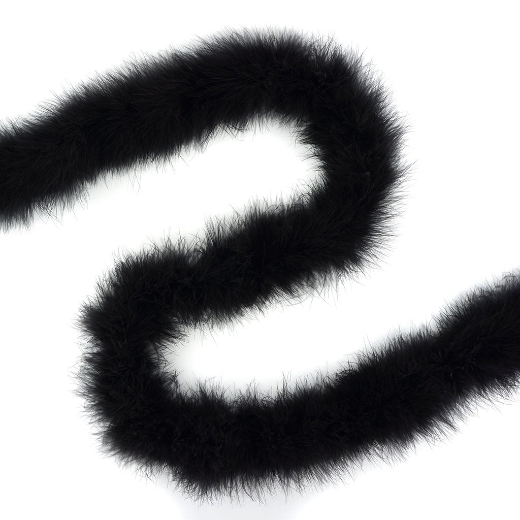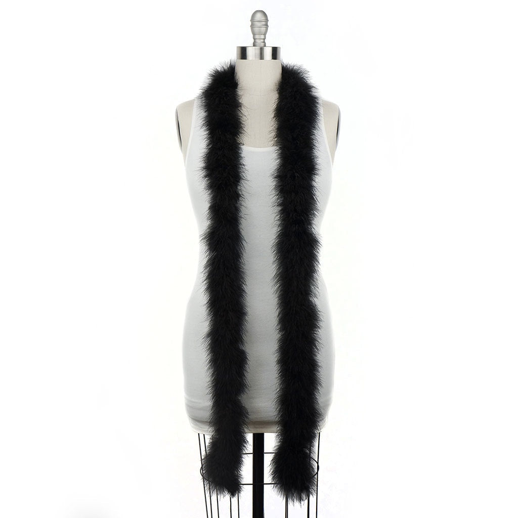 Our extra heavyweight black feather boa is 2 yards (6 ft) long, and approx 4" in diameter. This thick marabou boa is our fullest. These feather boa scarfs can imitate a faux fur look.