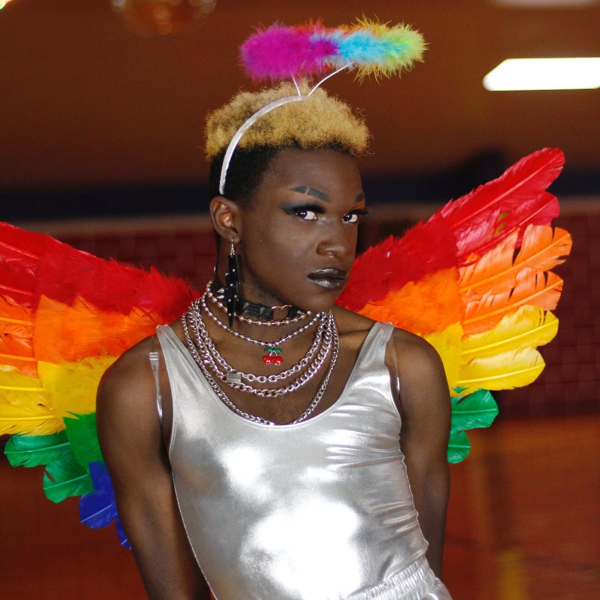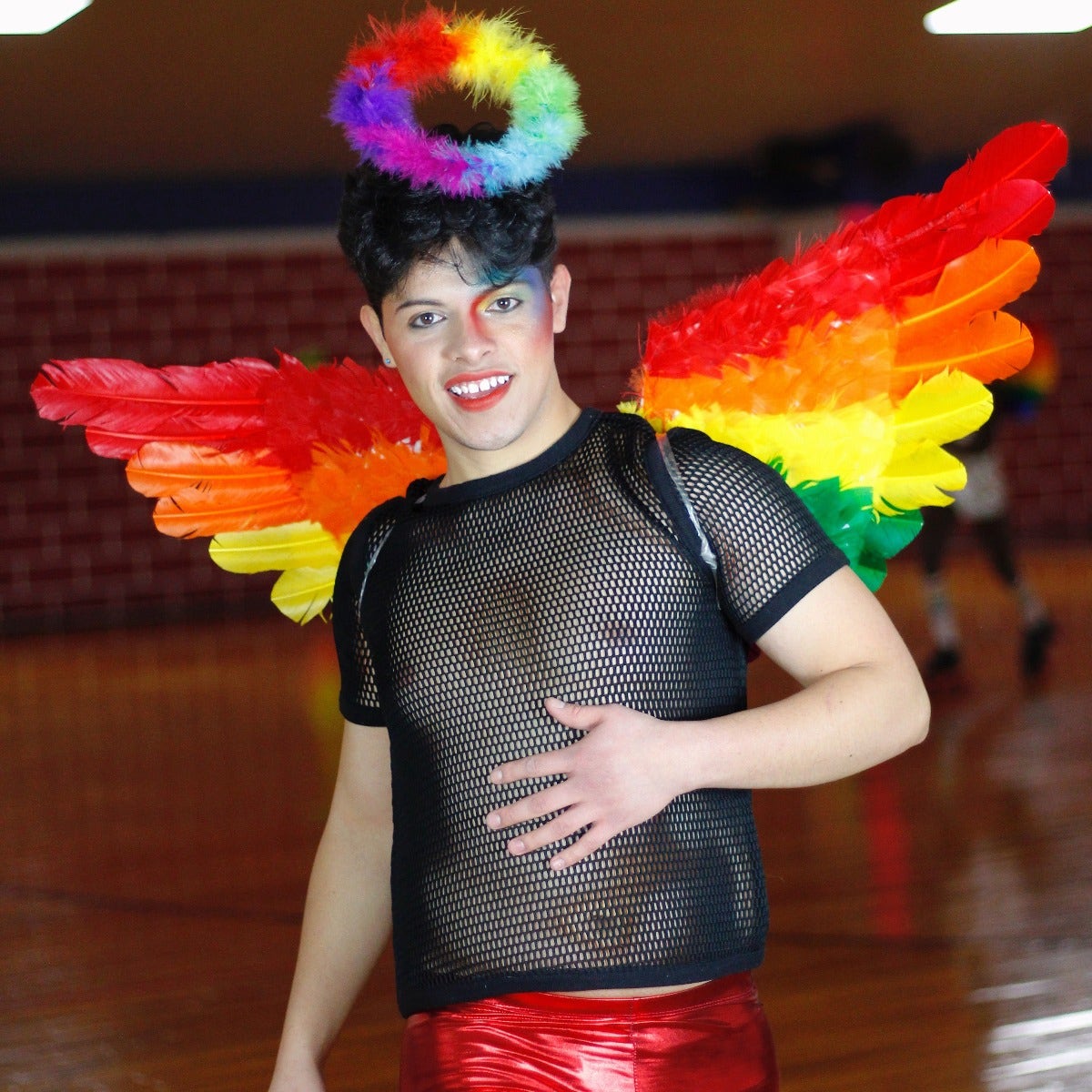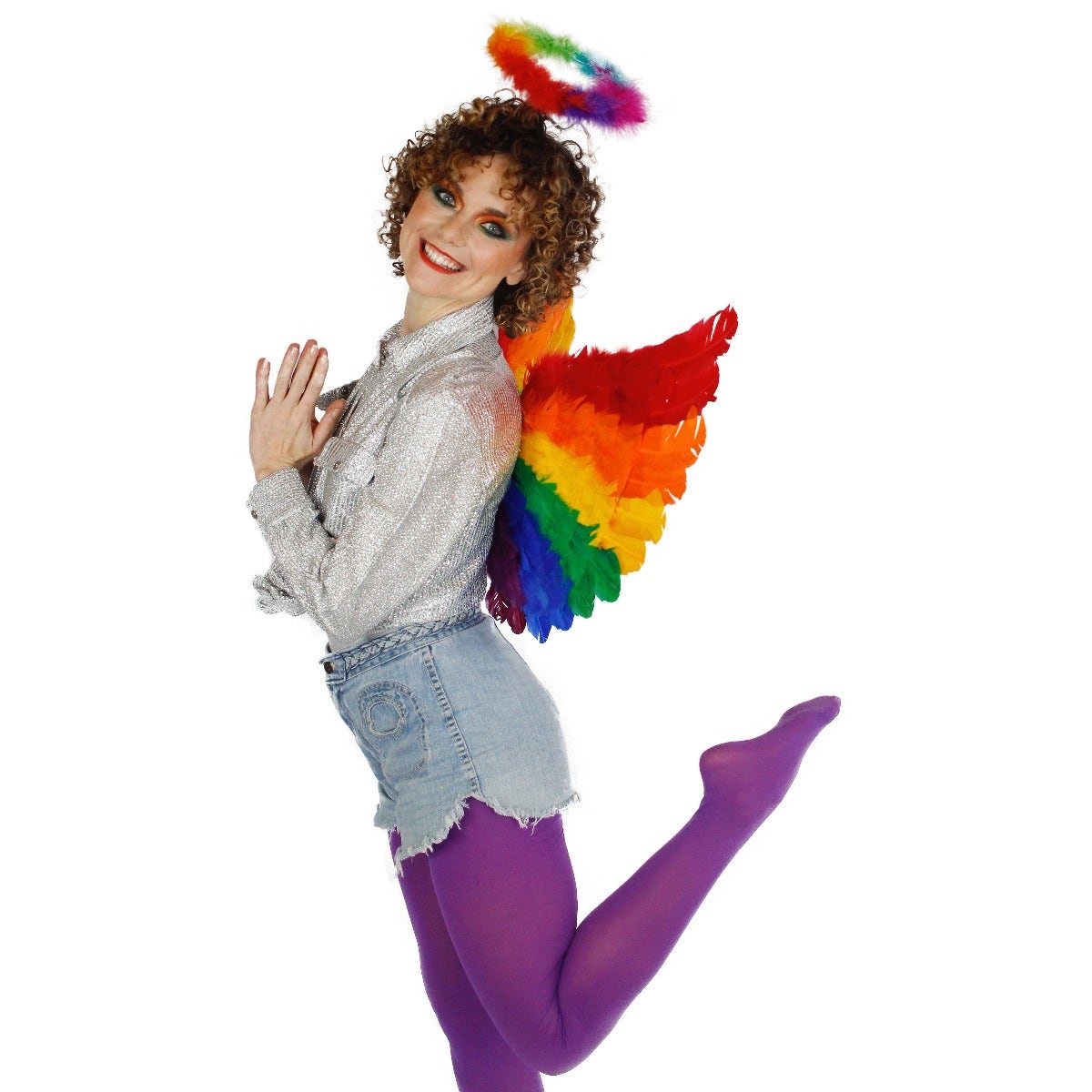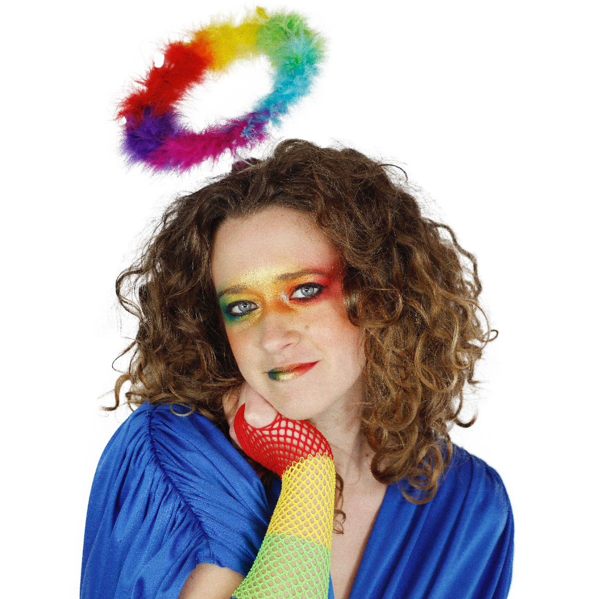 The Halo is wrapped in soft Rainbow Colored Marabou feathers for a lightweight fun look.