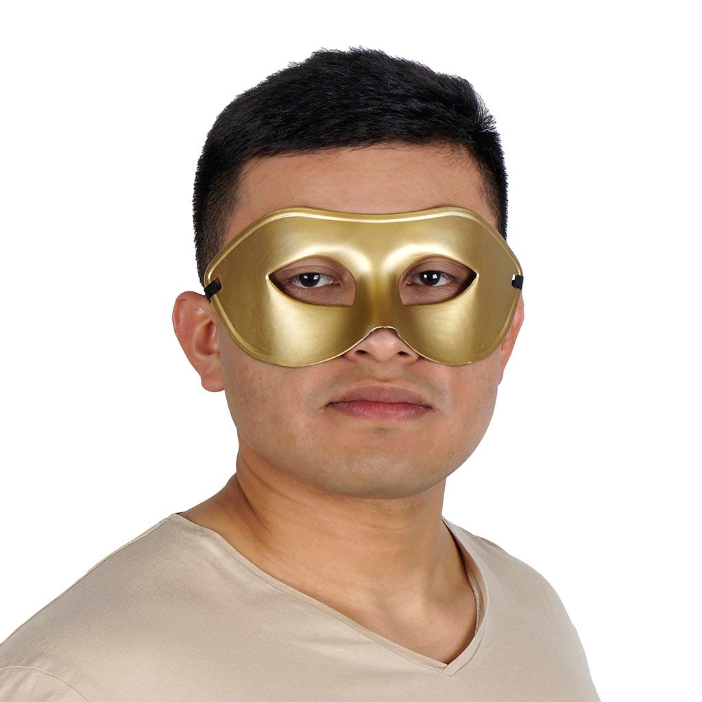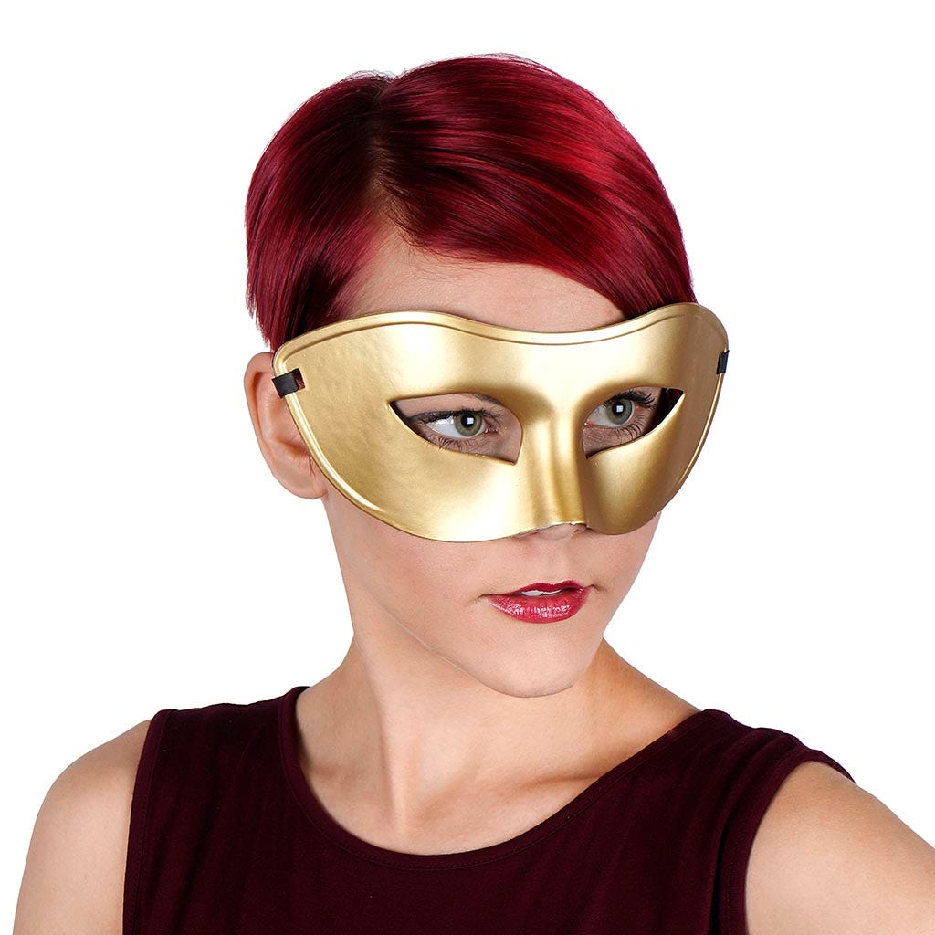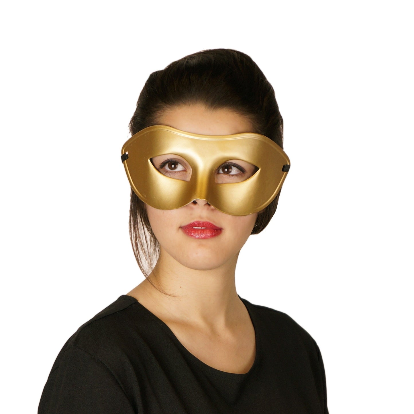 The Half Face Gold Venetian Mask Form measures 7" wide by 3.5" high and comes in a 1 piece package. This mask from has holes on each side with a black ribbon to tie around the head.