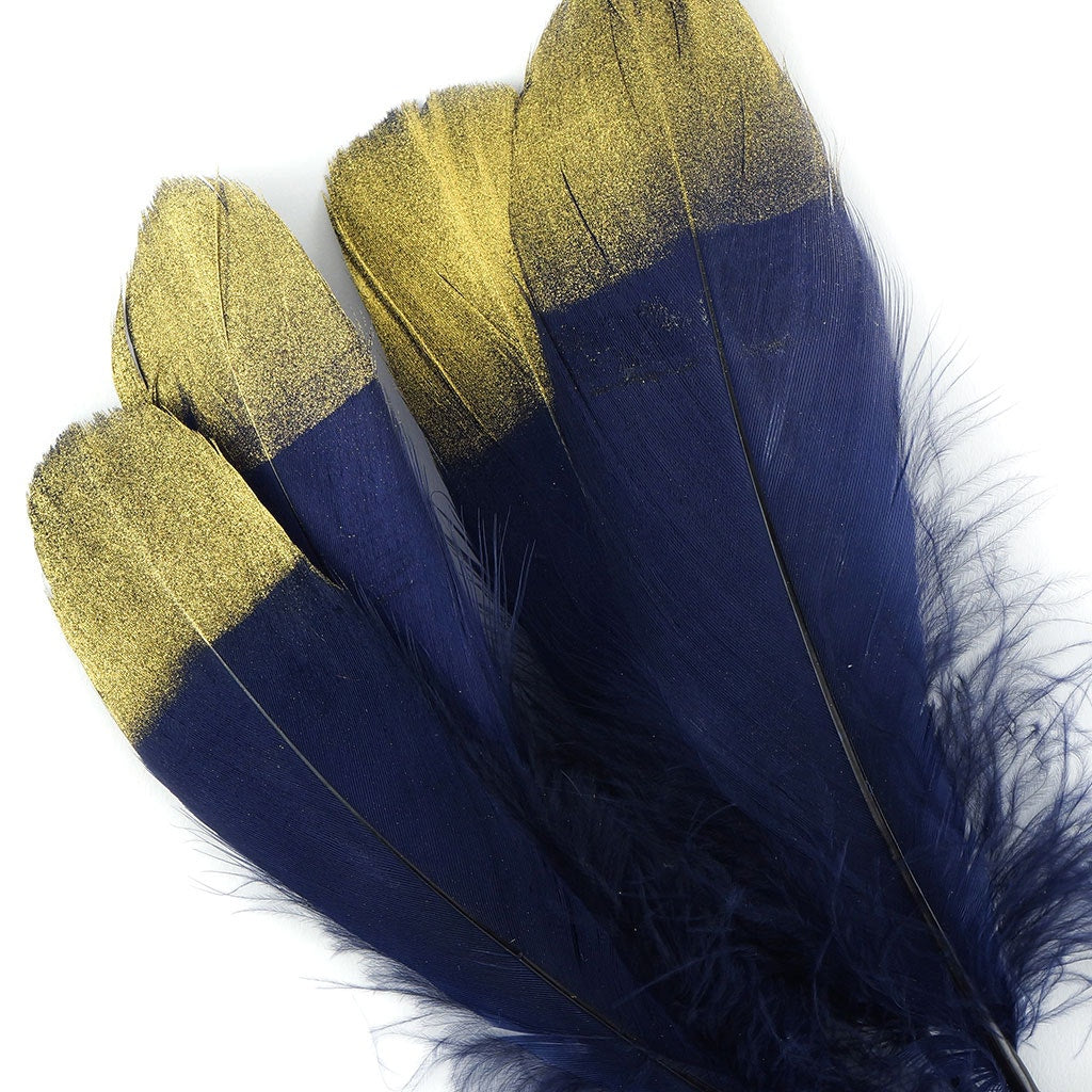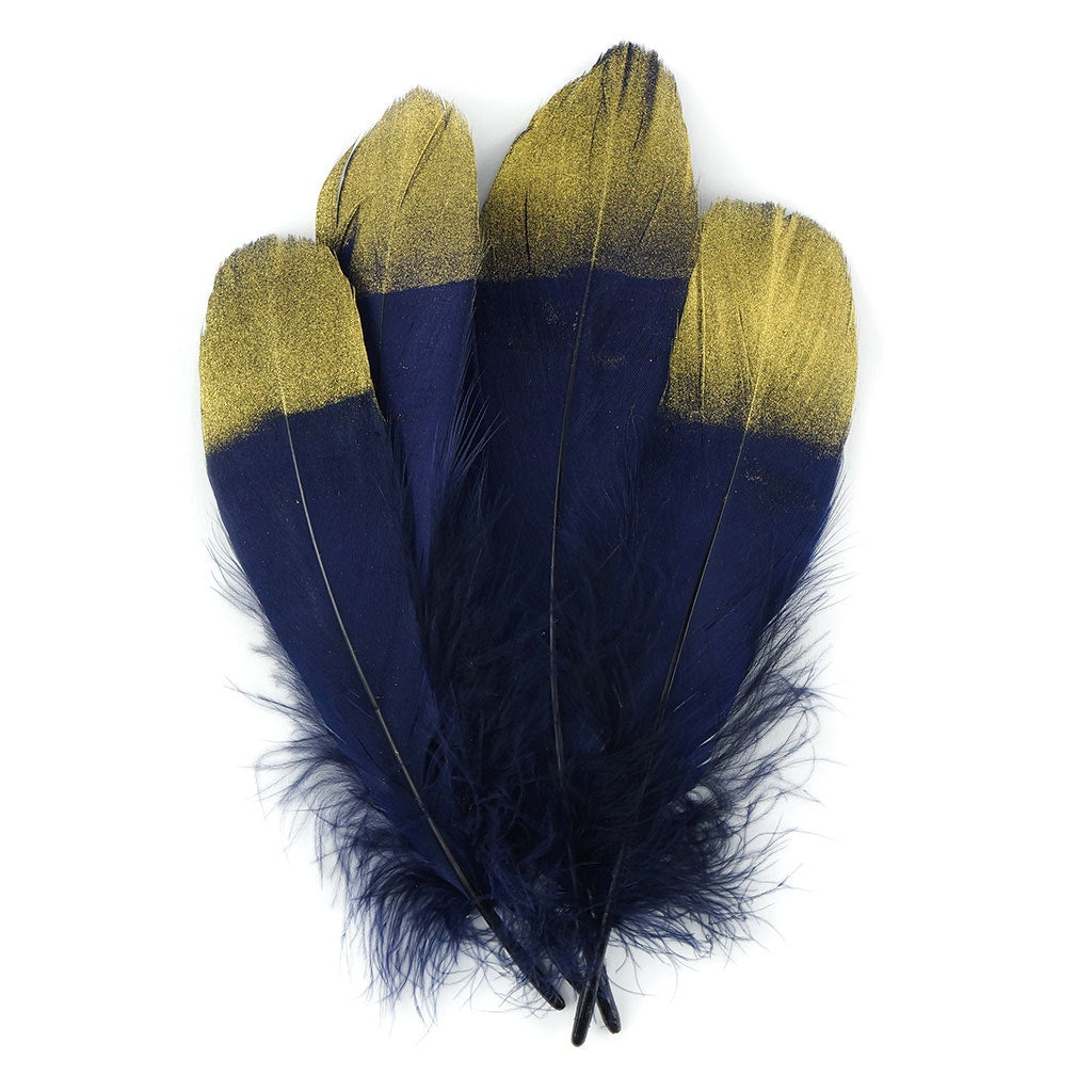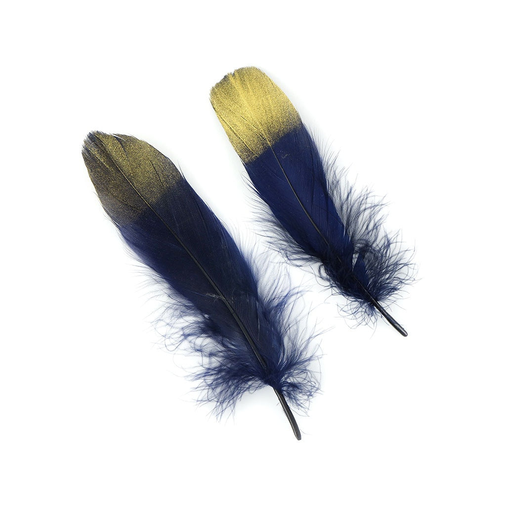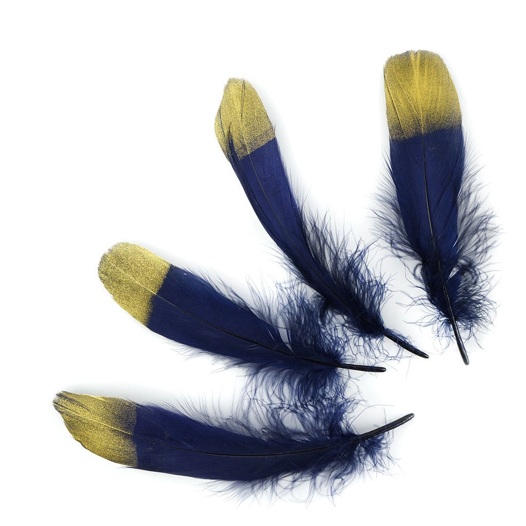 Metallic Tipped Goose Pallet Feather - Navy Blue and Gold