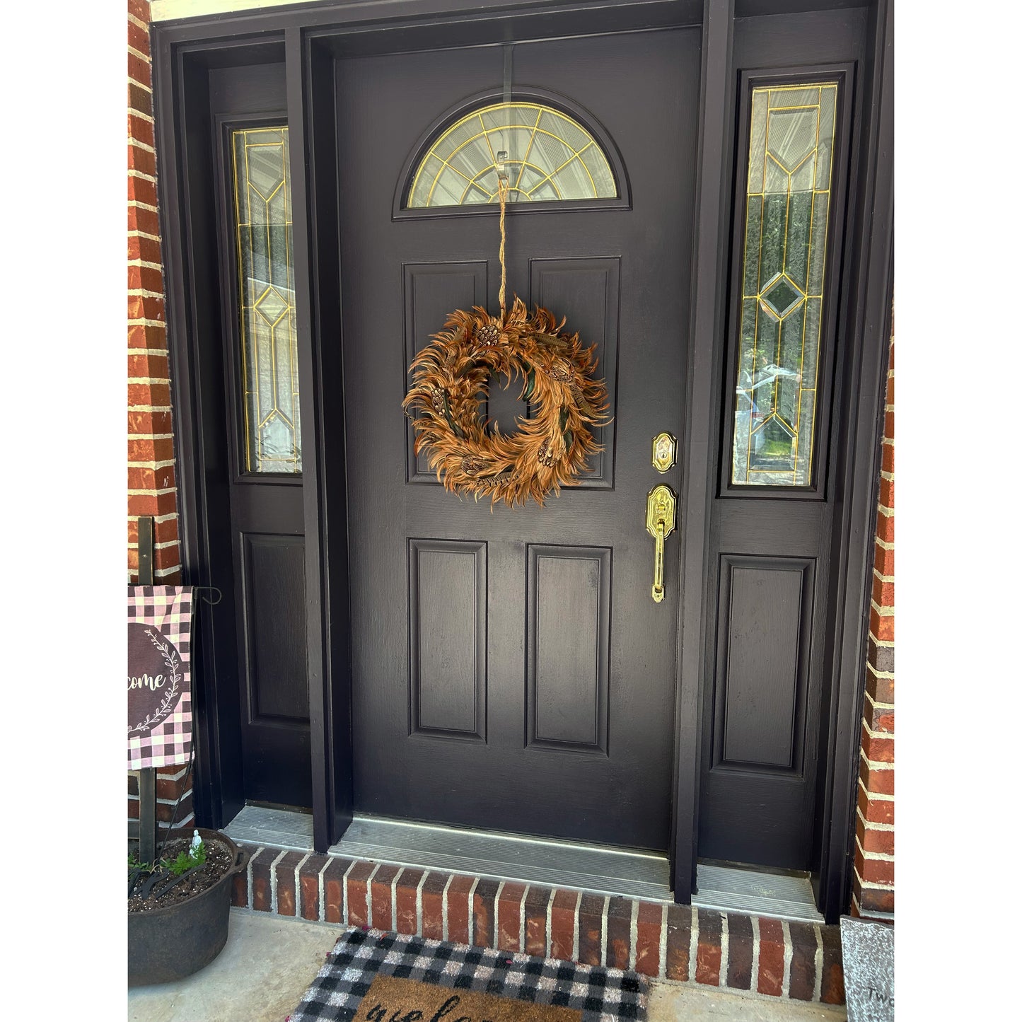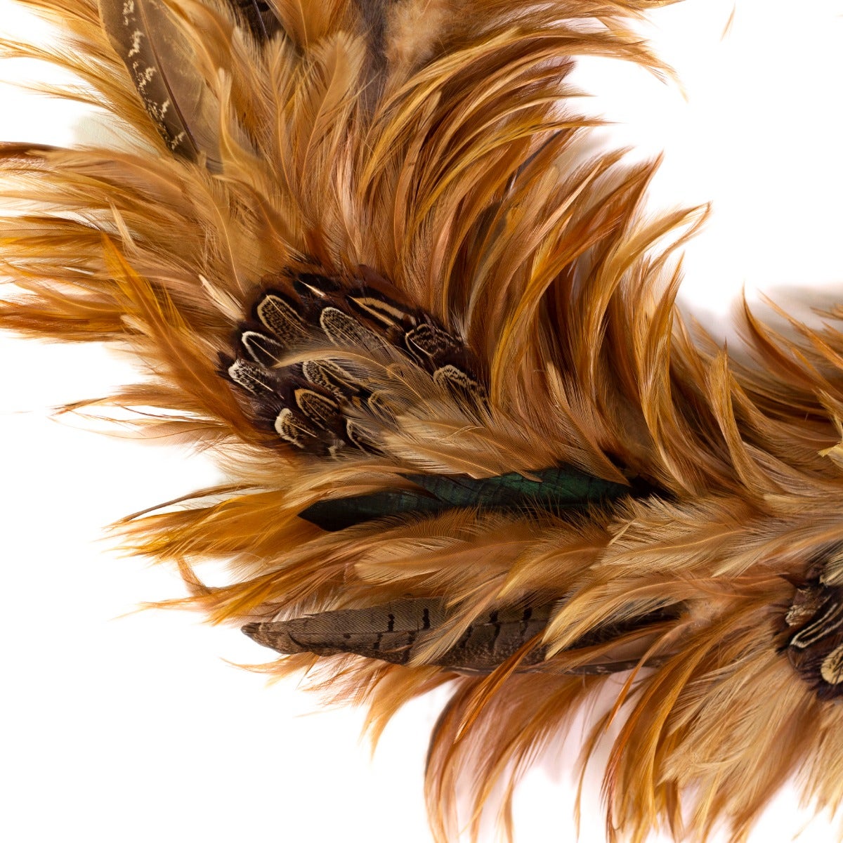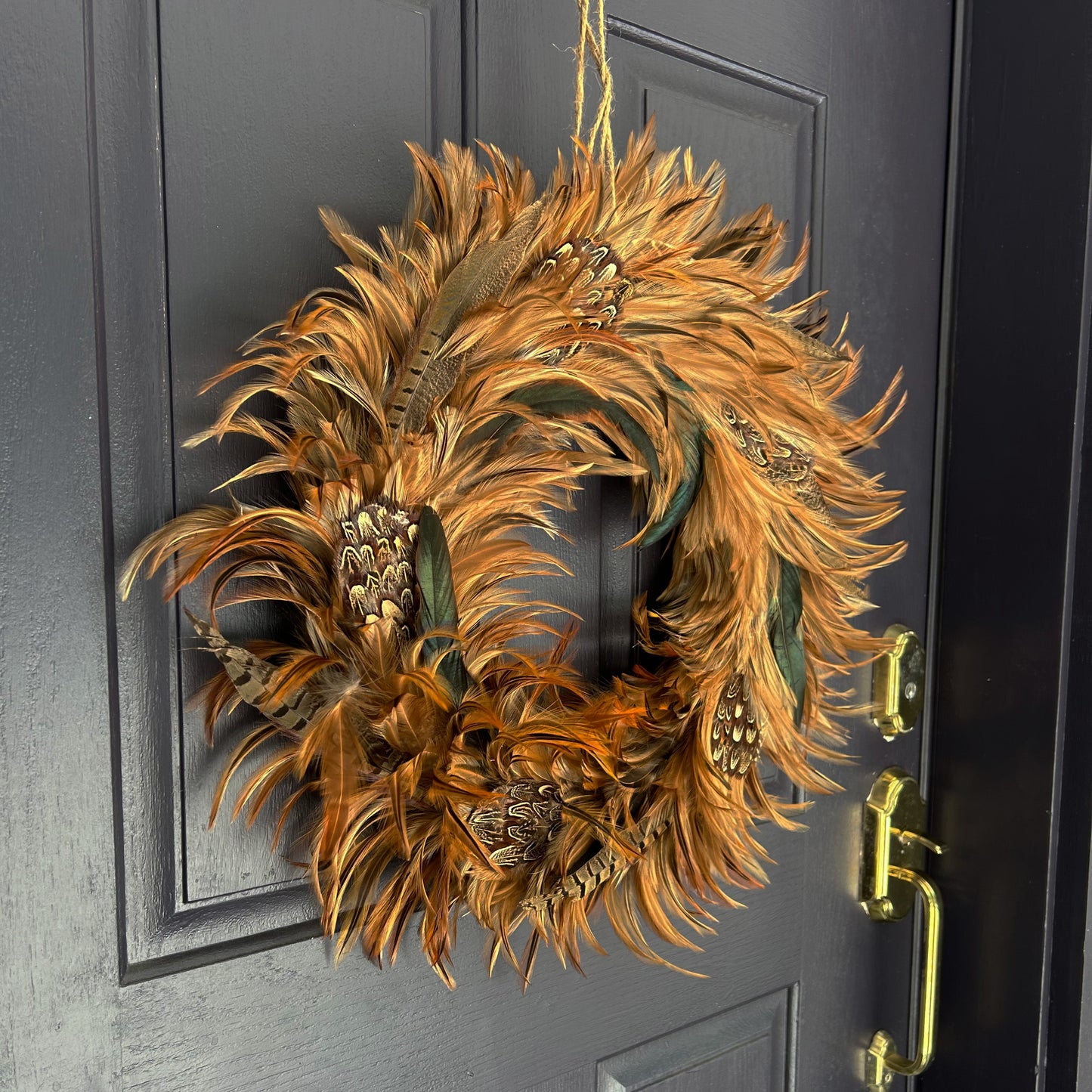 Natural feather wreath made with real pheasant feathers, ethically sourced
