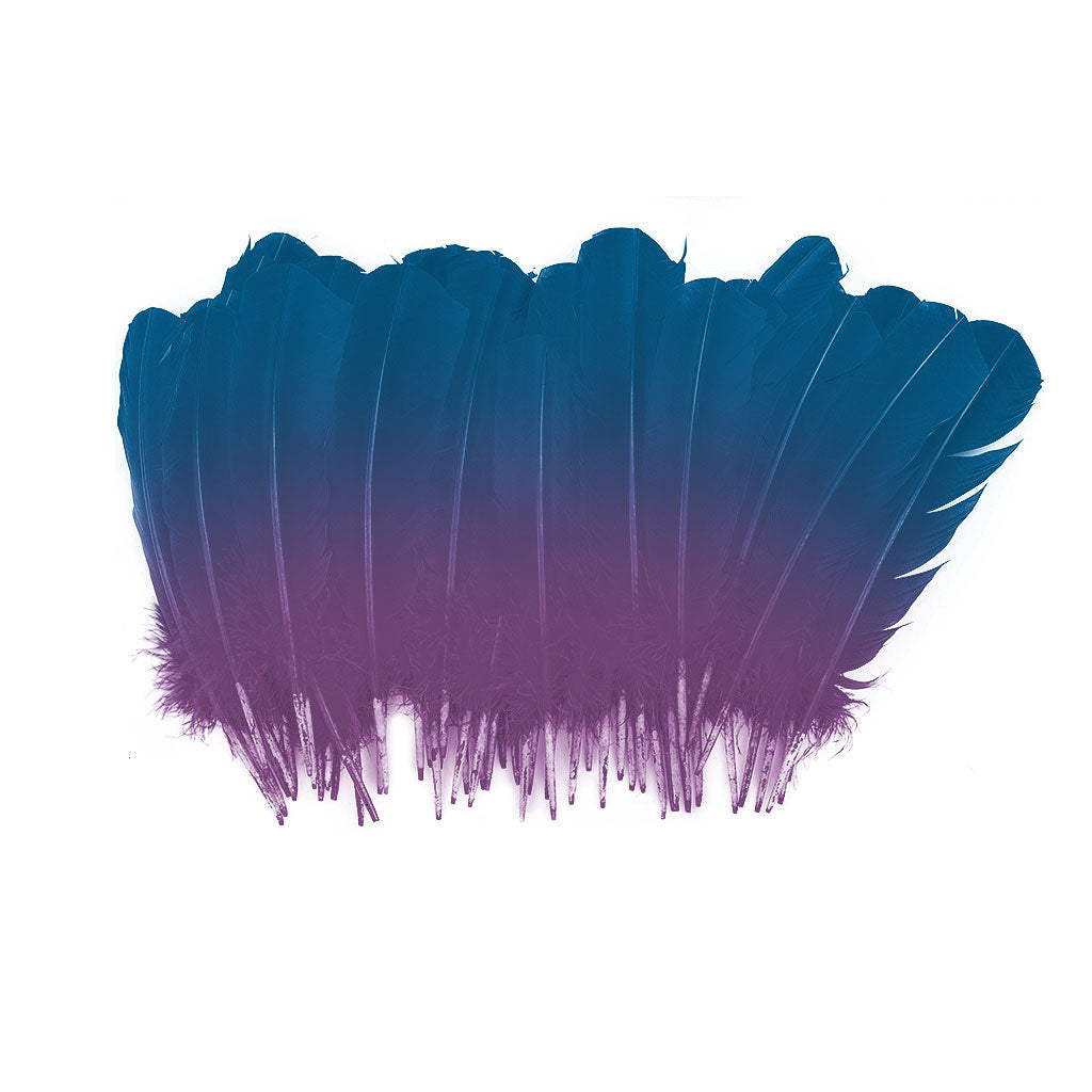 Ombre Turkey Quill 10-12" Right Wing Tip Silver .25 lb - Dark Turquoise-Purple