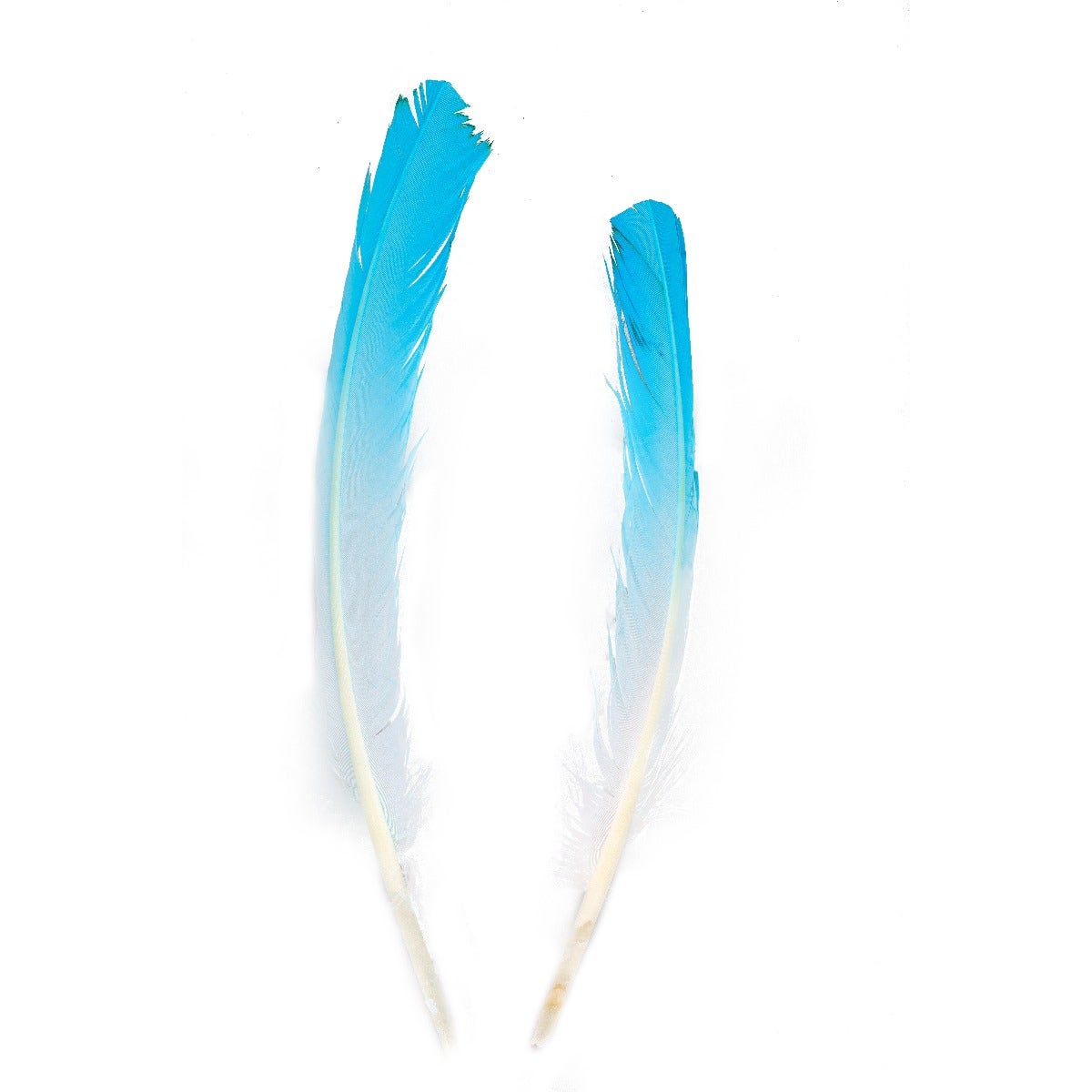 Ombré Turkey Quill Feathers 10-12” 2 pc - Light Turquoise /White