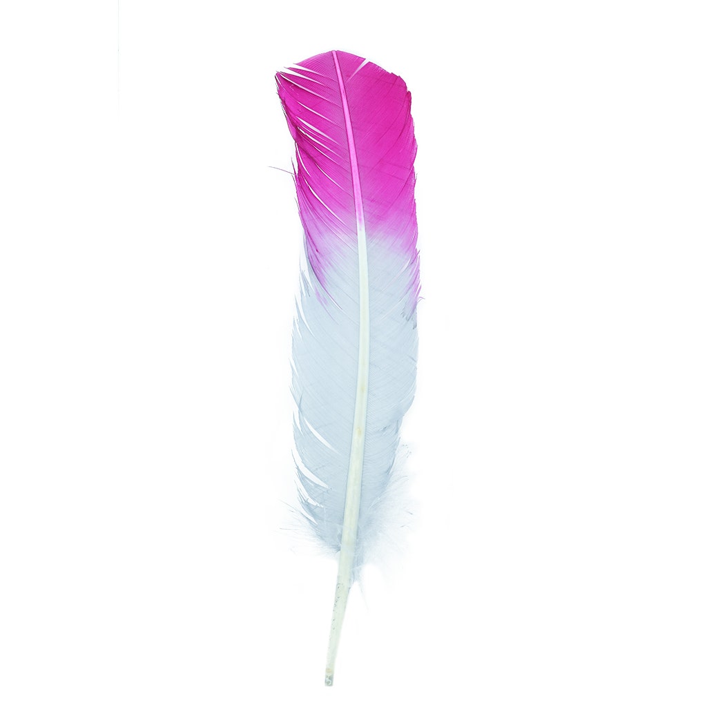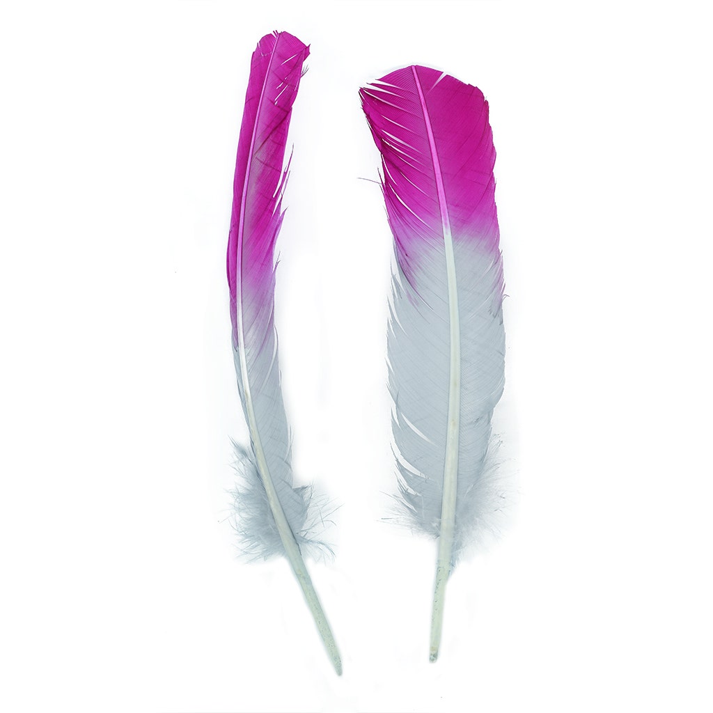 Ombré Turkey Quill Feathers 10-12” 2 pc - Very Berry- Silver