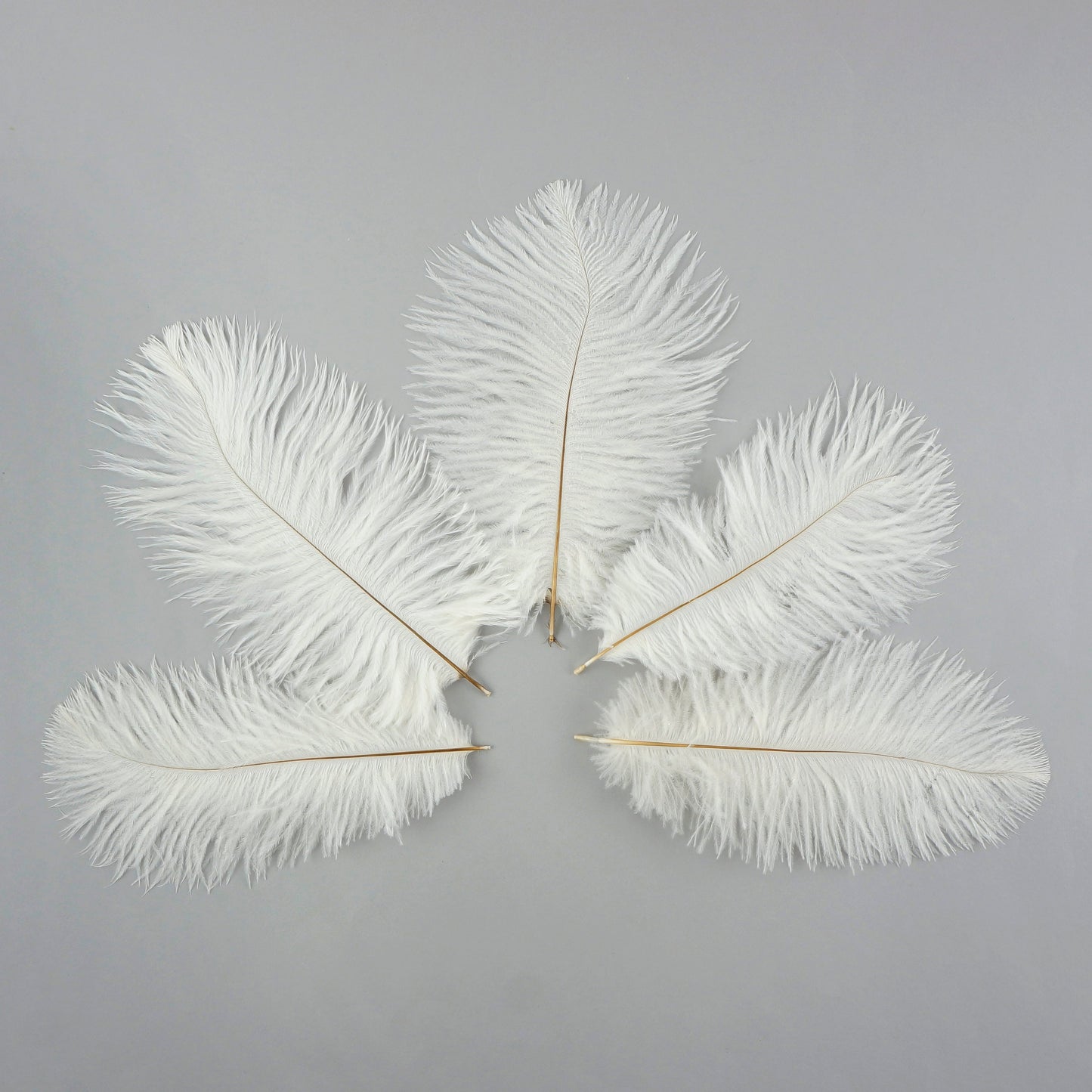 Ostrich Drabs are approximately 4-8" long, the smallest ostrich plumes we stock. The 2 piece and 12 piece packages are hand selected. The 1/4 lb ostrich feathers bulk contain approximately 185-200 pieces, non-selected.