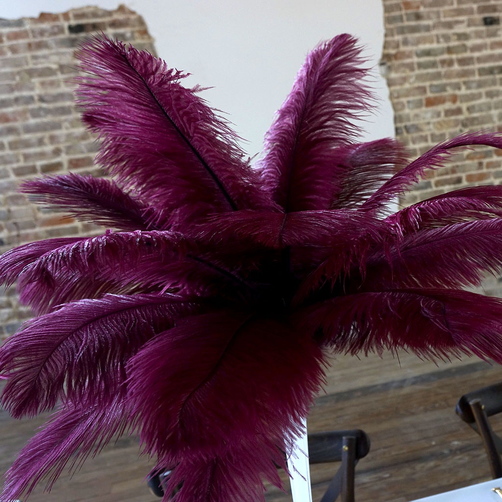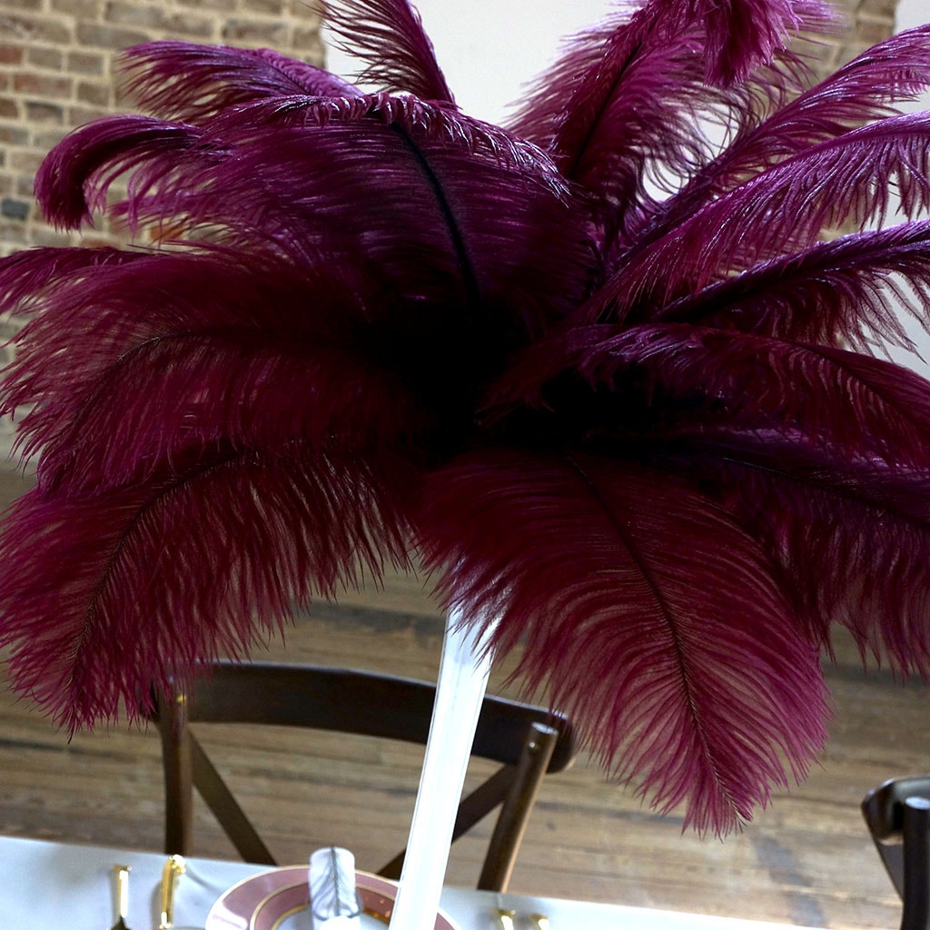 Eiffel Tower Centerpiece Burgundy Ostrich Feathers & White Vase