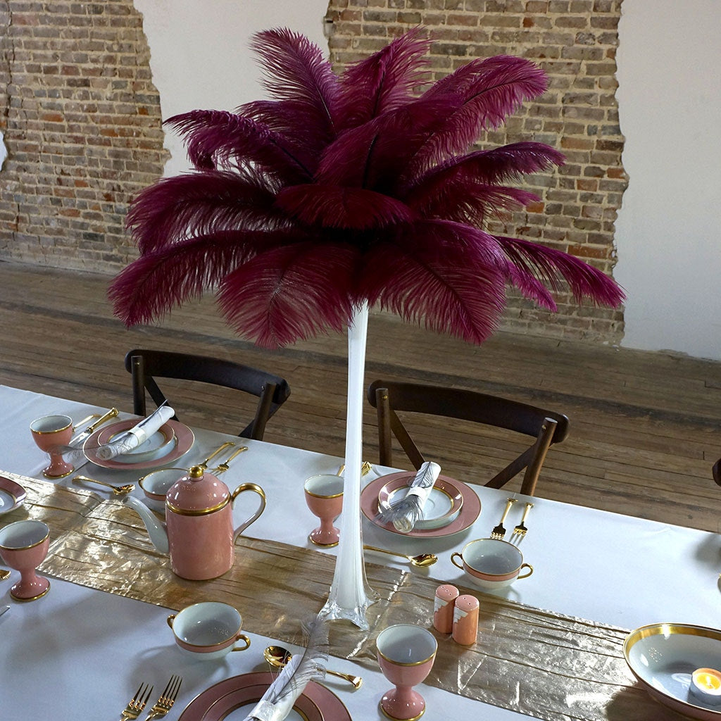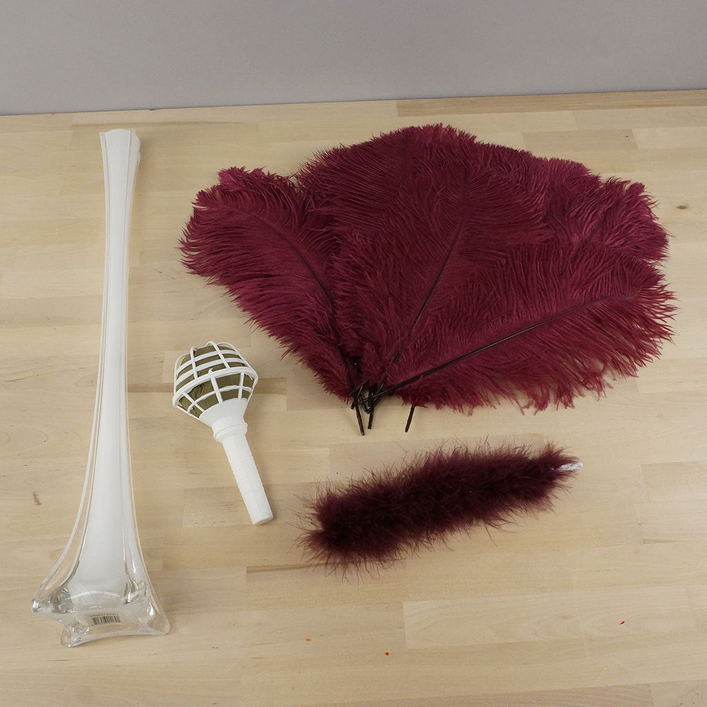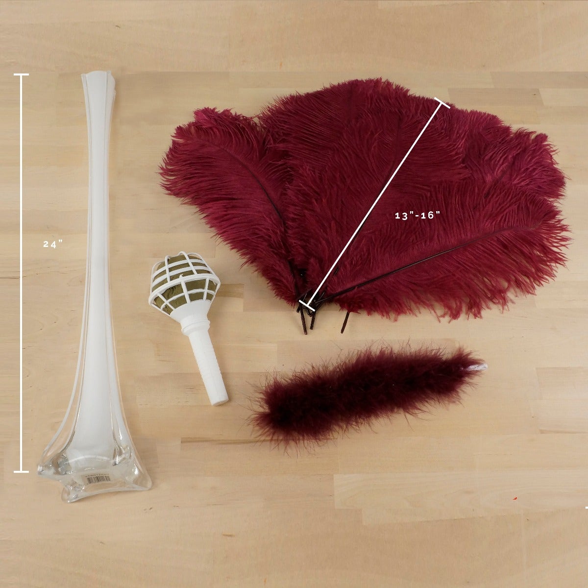 This eiffel tower vase with ostrich feather centerpiece set includes: